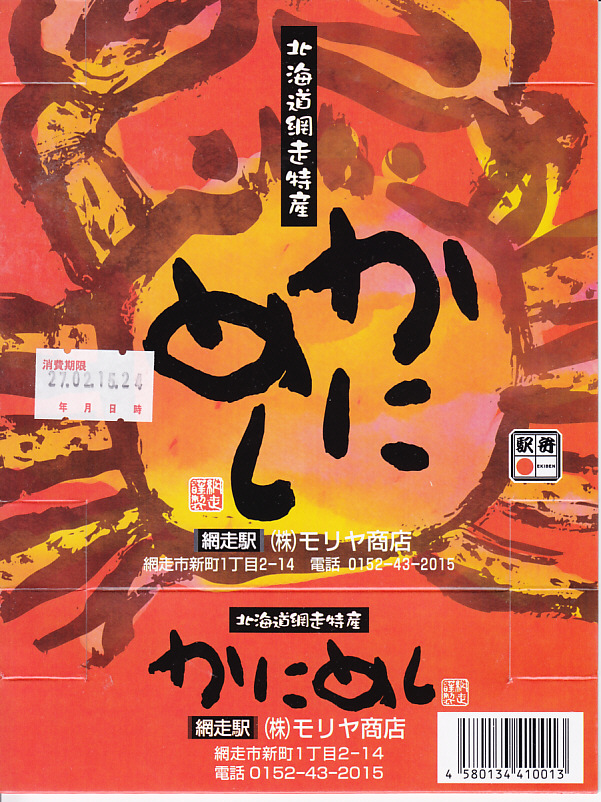 上記の駅弁「かにめし」の、2015(平成27)年時点での姿。上記の2025年のものと変わらない。