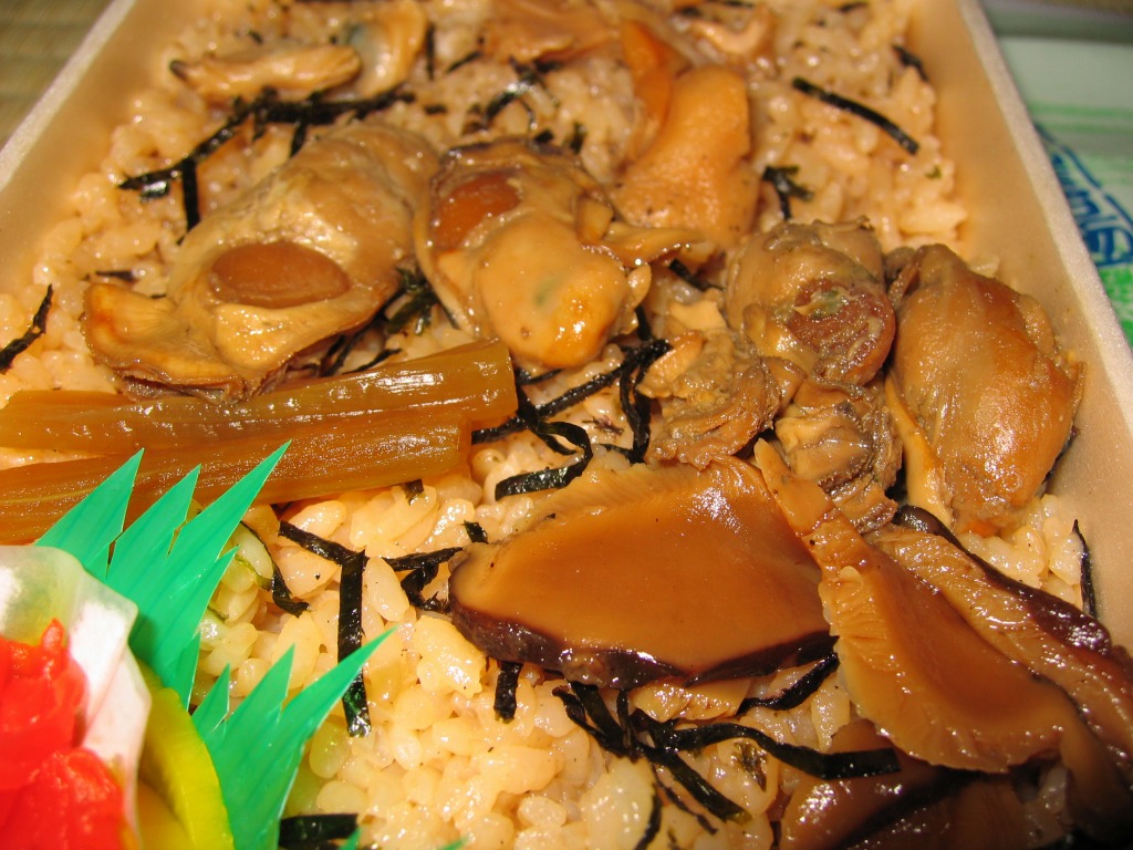 浅い長方形の容器に、カキの煮汁で炊いた御飯を敷き詰め、カキ煮4個にフキやシイタケやアサリで覆い、たくあんと福神漬けを添える。そんな内容は昭和時代からおおむね変わらないようにみえる。しかしカキの量や香りは減り、濃厚な臭いや口が痛くなる味は消えたと感じる。都会や催事で売りやすい、買われやすく食べられやすい、製造委託に向いた内容になったのだろう。他の駅にない内容のカキ駅弁である個性は、残っていると思う。価格はおそらく現地と同じで、2023年の購入時で1,190円、今なら1,480円のはず。