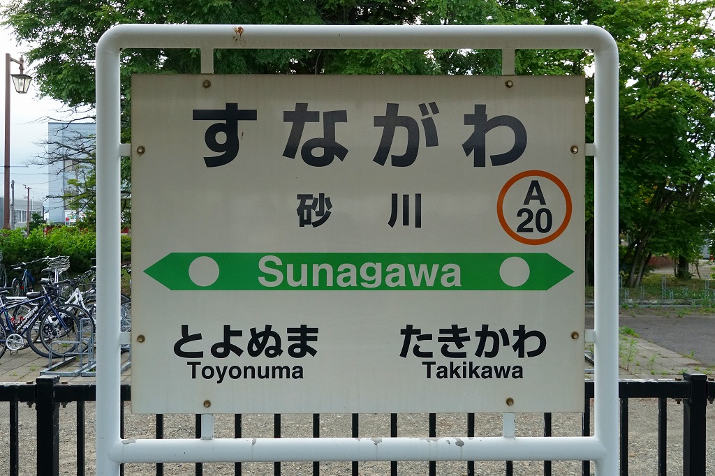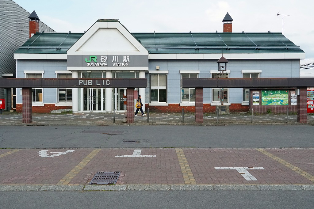 札幌駅から特急列車で47分。砂川市は北海道の中央部で石狩川が流れる、人口約1万5千人の開拓地。鉄道が開通し駅ができ原始林が開拓されたほか、石狩炭田あるいは空知炭田から来る2本の鉄道に水利や平地を生かした工業で発展した。駅弁は1900年頃から1960年代まで売られ、末期には稲荷寿司を「たぬきずし」と名付け販売した。1891(明治24)年7月5日開業、北海道砂川市東2条北3丁目。