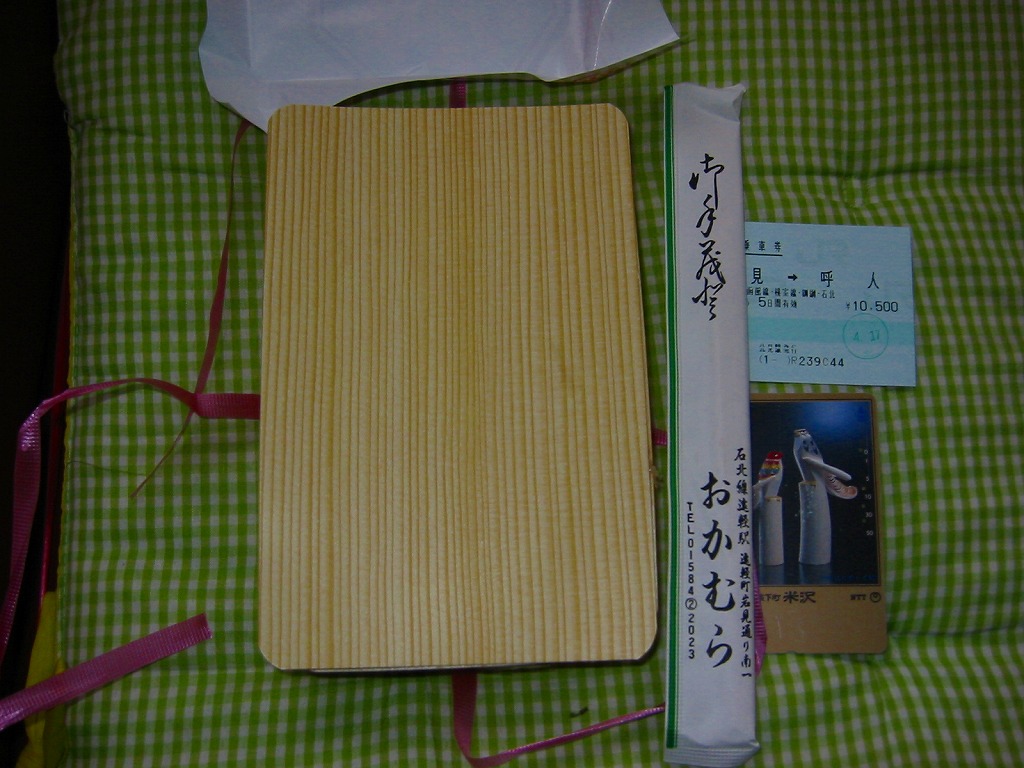 2004(平成16)年4月17日に購入した、昔の遠軽駅弁の掛紙。上記の2015年のものとの違いは、調製元の電話番号のみである。遠軽駅15時17分発の特急列車「オホーツク6号」向けに駅へ売りに来た駅弁を、普通列車の乗り継ぎ待ちの時間で購入した。