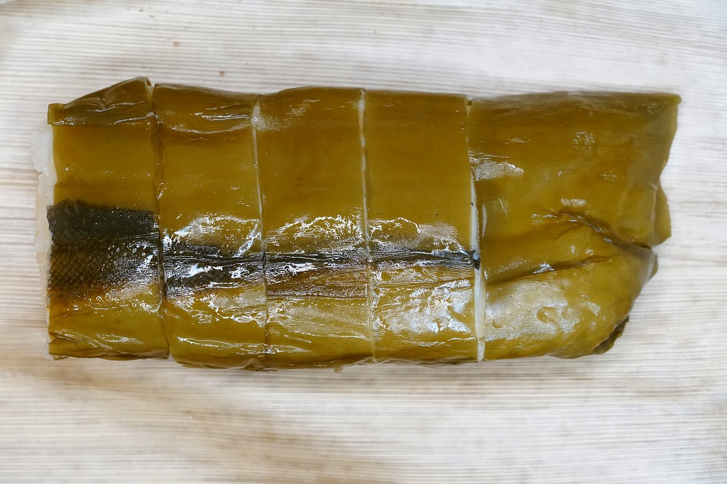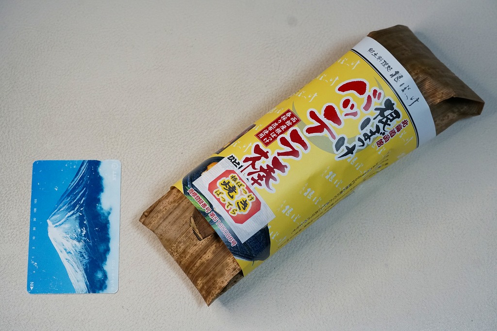 新函館北斗駅で駅弁が買えるキヨスクで、駅弁と一緒に売られていた棒寿司。大葉や白ごまを混ぜた酢飯に、薄身の真ほっけと生姜を貼り、春採り昆布で巻いた小柄な棒寿司を1本、透明なフィルムで密封し、竹の葉に包み、商品名や紹介文を記した黄色い掛紙を巻く。ホッケは焼き魚では全国の惣菜や居酒屋のメニューでおなじみでも、寿司などそうでない惣菜や弁当は珍しいと思うし、駅弁や駅売りの弁当ではとても珍しく、ホッケの棒寿司は見聞きしたことがない。食べればサバなどメジャーなものに比べて、飯が多く身が少なく味の薄いものに思えても、この内容が駅で買えること自体を旅で味わう。函館駅の駅弁でもごくまれに、幕の内弁当タイプのものにホッケの焼き魚が入ることがある。