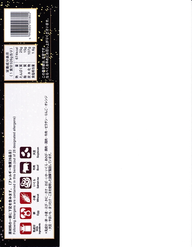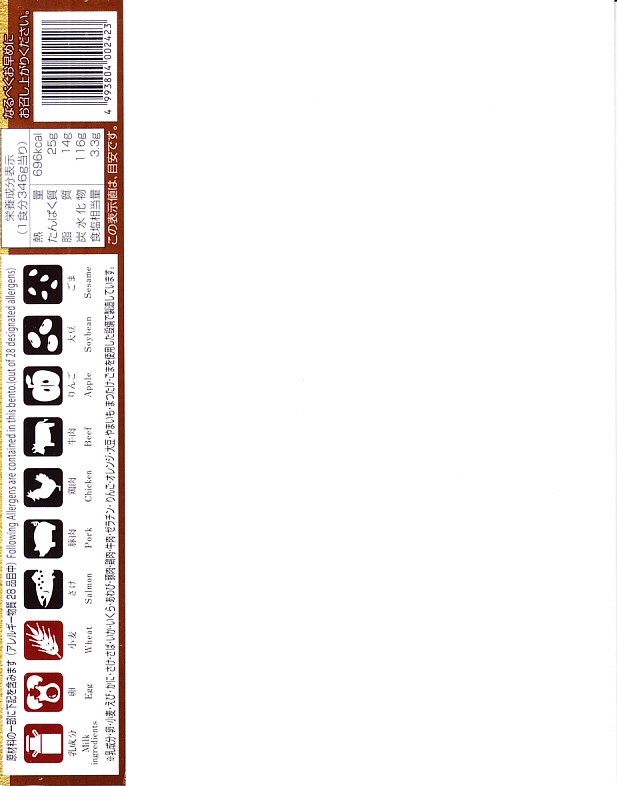 2017(平成29)年秋の新作。スーパーやデパートでの駅弁大会シーズンに向けて、秋は見栄えの良い駅弁の新作がよく出てくる。他の新函館北斗駅弁と同じく、スリーブの上面に駅弁の名前と中身の写真を半分ずつ載せる。中身は駅弁の名前のとおり、茶飯をローストビーフと牛肉煮、玉子焼、野沢菜、ガリ、イクラ、カニほぐし身、ホタテ照焼、蒸しウニ、サーモンで覆うもの。見本の写真に違わない見栄えと、安定した味。このシーズン限り半年間ほどの販売か。