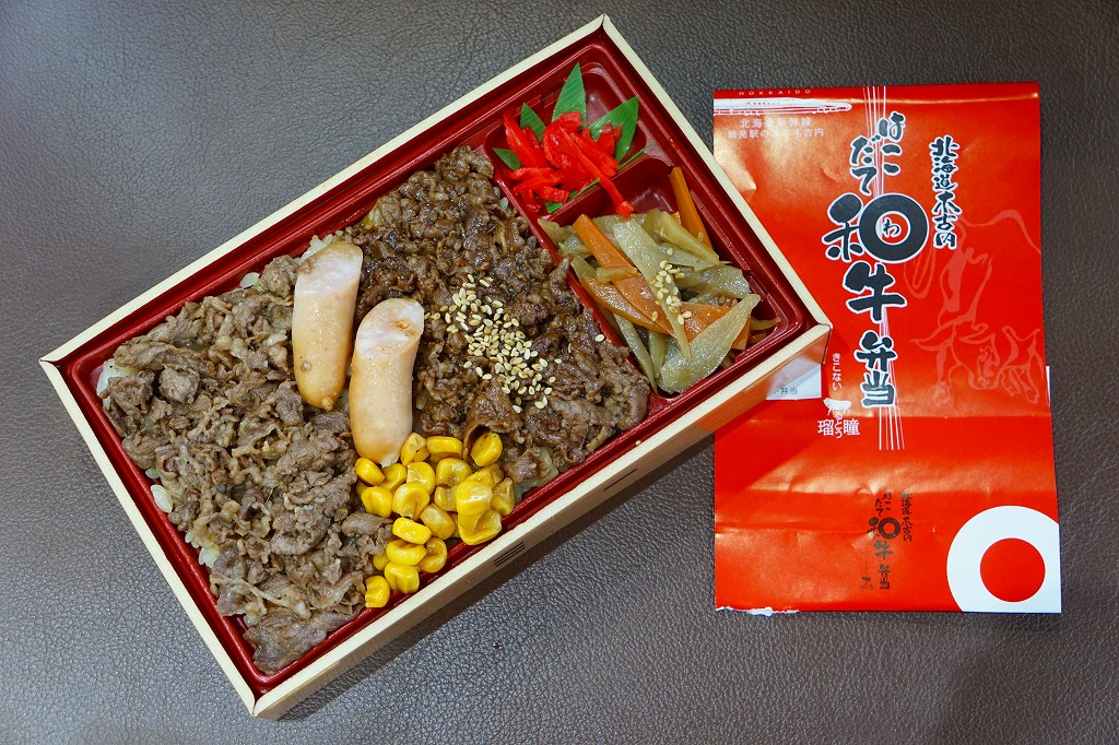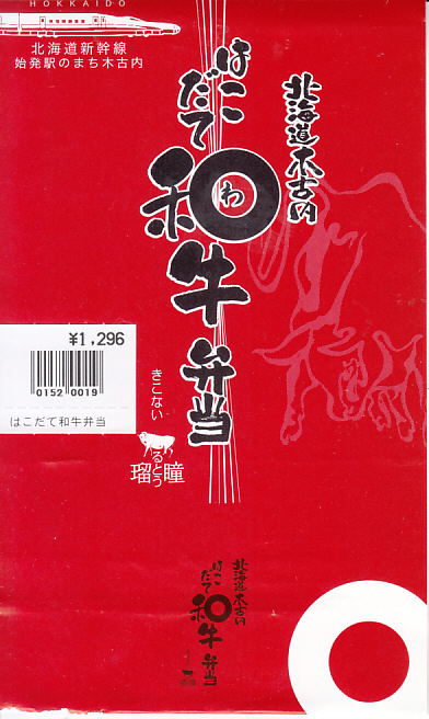 道の駅の弁当であるが、掛紙には新幹線電車の側面図と「北海道新幹線始発駅のまち木古内」の文字がある。中身は白御飯を二色の「はこだて和牛」の牛肉煮で覆い、ソーセージ、コーン、きんぴらごぼう、紅生姜を添えるもの。味付けの甘さで、肉の味が飛んでしまった感があるが、見た目と機能は駅弁そのもの。価格は2016年の発売時や購入時で1,296円、2019年10月の消費税率改定で1,320円、2023年時点で1,200円だという。