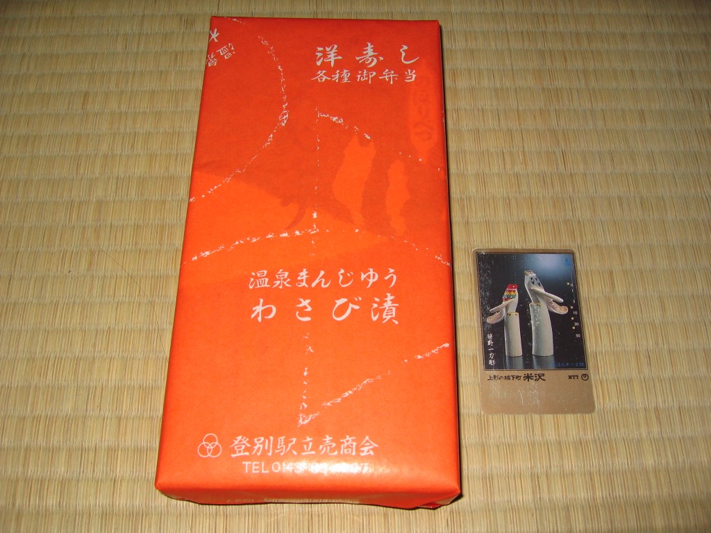 1959(昭和34)年に登別駅で発売。商品名を記した専用の紙箱に、9切れ分のバッテラを収める。その具がなぜか、トンカツ、焼豚、チーズ、ハムが各2切れとキュウリであり、ユニークというかゲテモノというか、非常に個性的。駅弁屋の社長がすしめしを食べながら、間違えてチーズを口に入れたことから誕生したというエピソードが伝わる。調製元の駅弁からの撤退により、2004年9月限りで失われた。