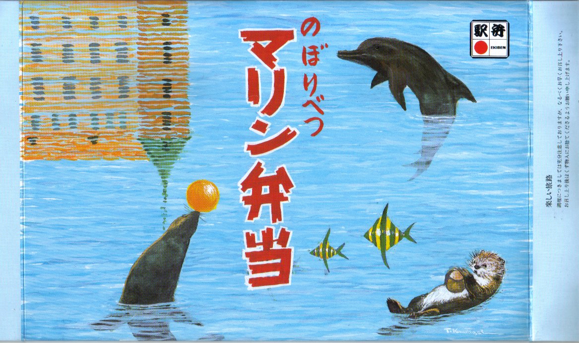登別駅の近くの観光施設「登別マリンパークニクス」の開業を記念し、1990(平成2)年に発売。専用の青い紙箱には、ラッコとアシカとイルカに「ニクス城」と名付けられた観光施設の建物を描く。中身は暖かい日の丸御飯と、冷たいおかずの有頭海老や焼鮭や玉子焼やコロッケやかまぼこ、ホタテなどの煮物、すじこ、漬物など。北の味もあるような気がする幕の内弁当。調製元の駅弁撤退により、2004年9月限りで失われたらしい。