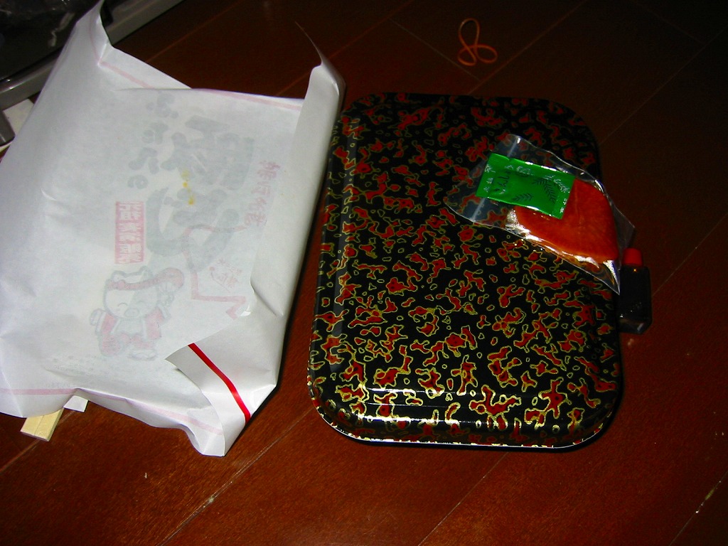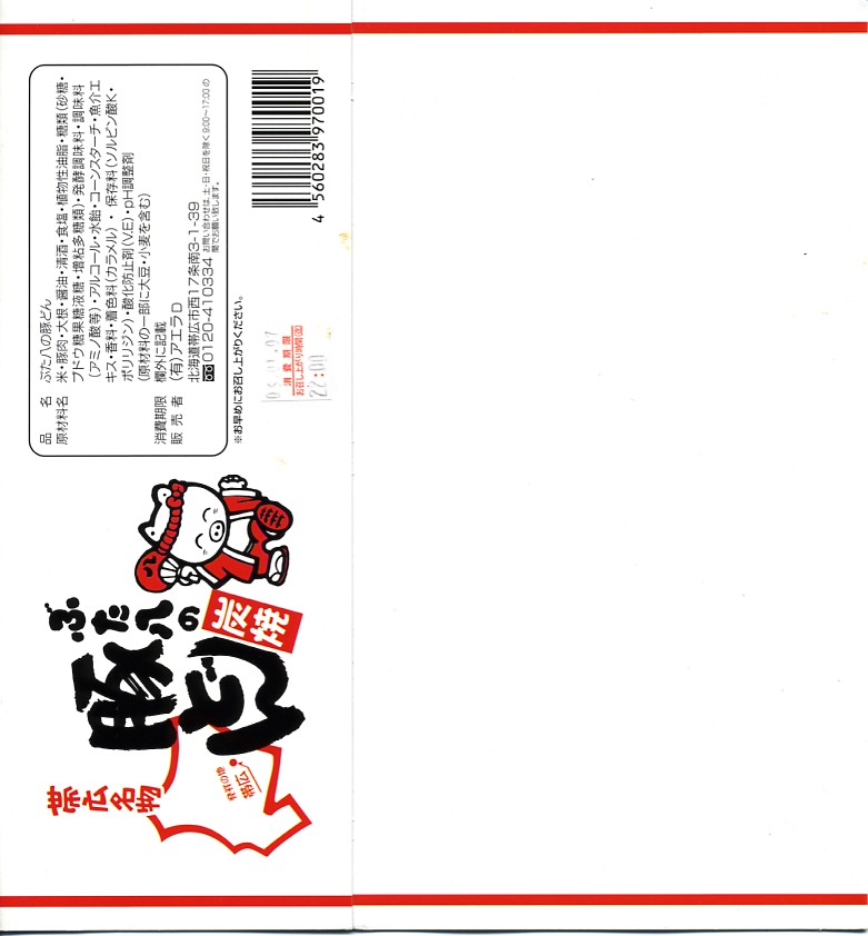2006(平成18)年1月7日に購入した、帯広駅弁のスリーブ。上記の2023年のものと同じ。首都圏の百貨店での駅弁催事で購入。この時は「炭焼」の文字があり、掛紙でなくスリーブを使い、その印刷はまとも。しかし販売者の社名や電話番号が、帯広の現地と異なるうえに、電話帳などで調べても出てこなかった。平日9時5時のみ営業な食堂や駅弁屋などあり得ないので、催事用のペーパー会社か代行業か。