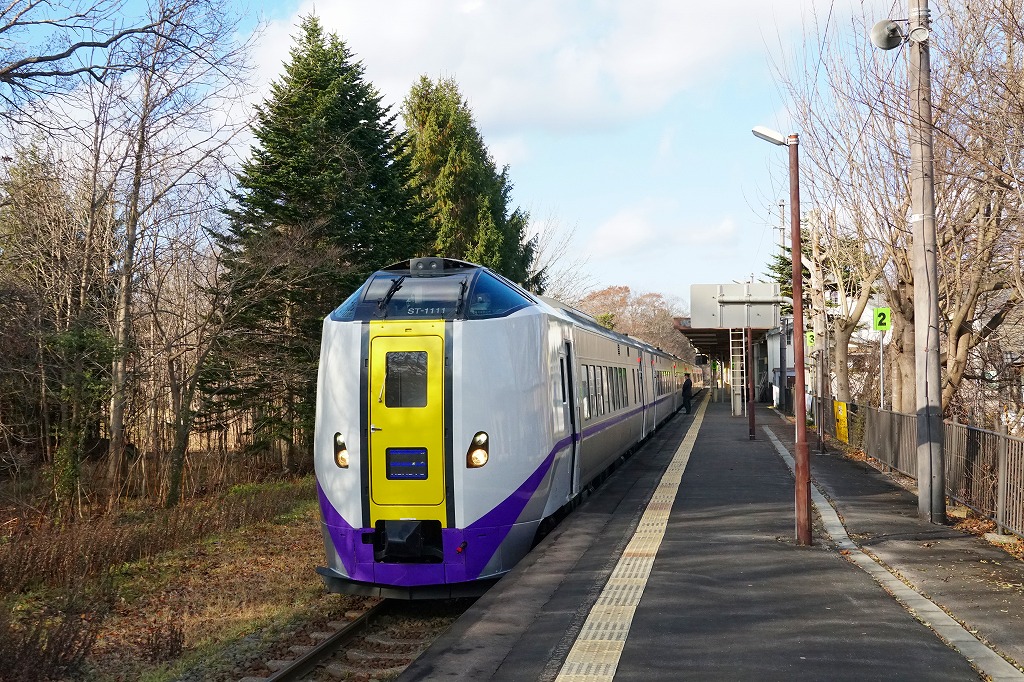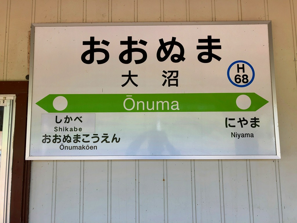函館駅から特急列車で約20分。国定公園に指定されている大沼への玄関口で、駅前にはレストランやホテルや駐車場が立地、観光シーズンには鉄道と自動車の観光客で賑わう。かつて「大沼だんご」の駅売りが名物であった。現在は駅構内で買うことはできないが、駅前に店舗があり、観光客で賑わう。1908(明治41)年6月1日開業、北海道亀田郡七飯町大沼町。