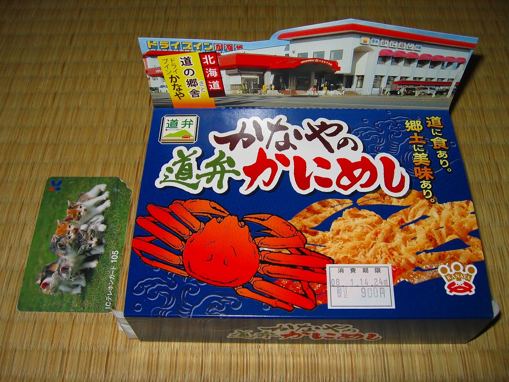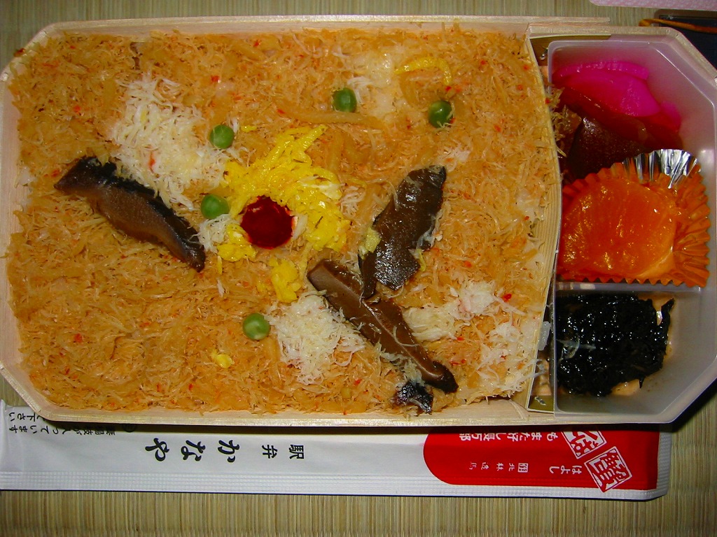 中身こそコンビニの再現駅弁っぽい見栄えと分量だが、食べてみればかなやのかにめしの駅弁の味が出ていると思う。駅弁のかにめしそのものが、駅の中では買えなくなって、事実上ドライブインやクルマの弁当になったことを、これで表したのかもしれない。2007〜2008年の駅弁大会シーズンのみの販売か。