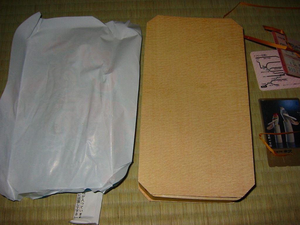 2004(平成16)年1月12日に購入した、長万部駅弁の掛紙。現地でなく、デパートの駅弁大会で買ったため、調製印は百貨店のものとなる。2年半前のものと比べて色調が変わり、食品表示と容器包装リサイクル法に基づく識別表示が右下に加わった。