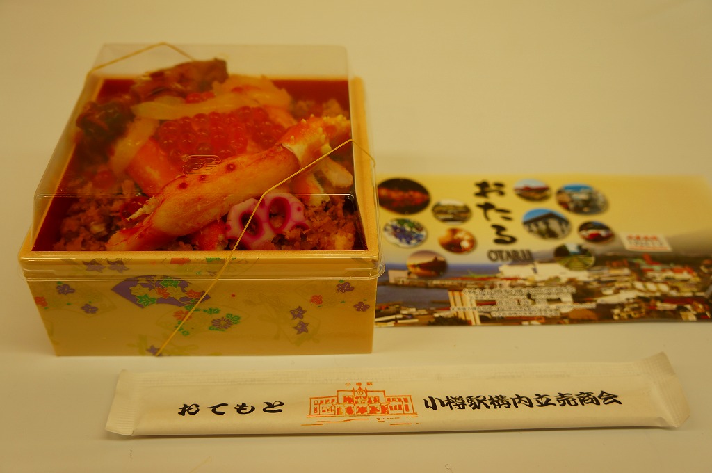 2013(平成25)年2月の鶴屋百貨店の駅弁大会で、小樽駅弁とともに実演販売されていたお弁当。上げ底、上げふたの催事向け容器に飯を敷き、ウニ、イクラ、カニなどを盛り、「おたる OTARU」と書かれた、風景写真を使った掛紙をかけていた。味は見た目のとおりで、どこの食べ物なのか分からない内容。価格と本来の商品名は失念。