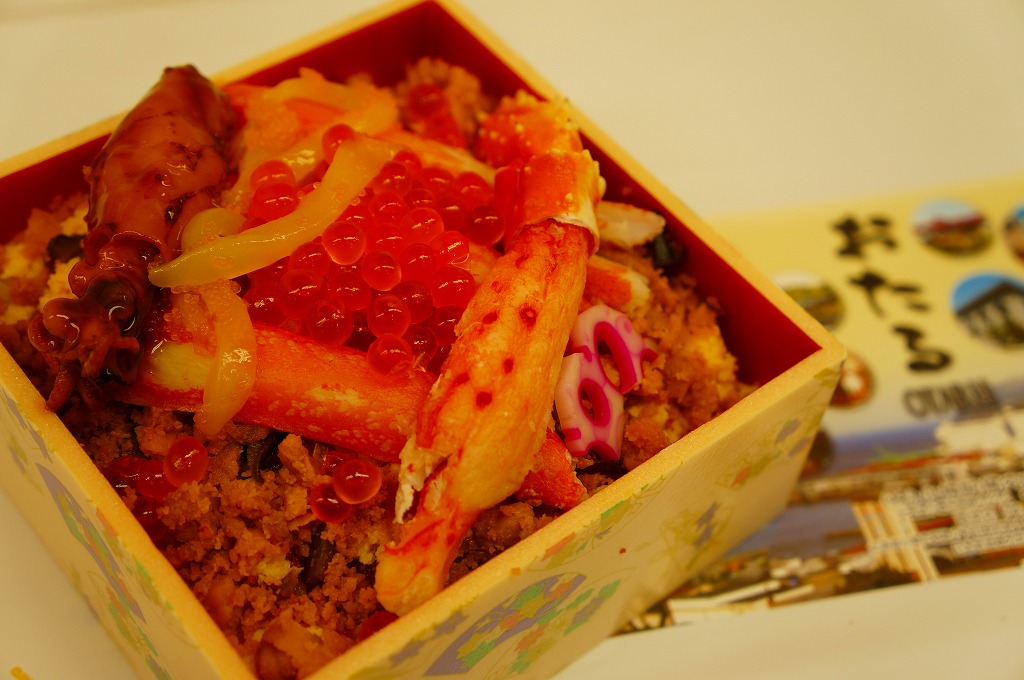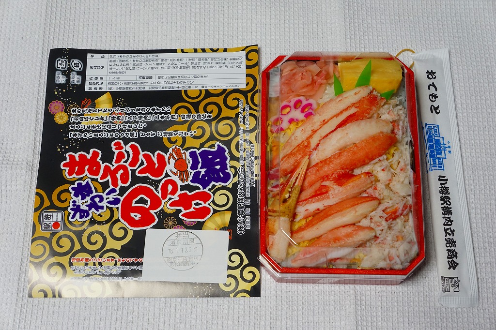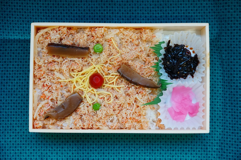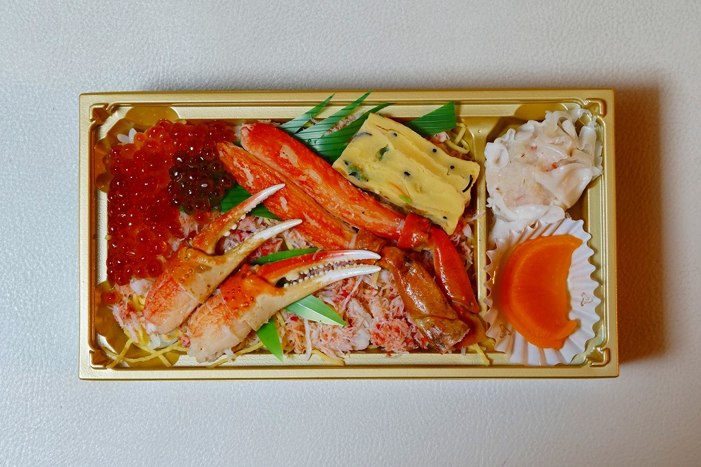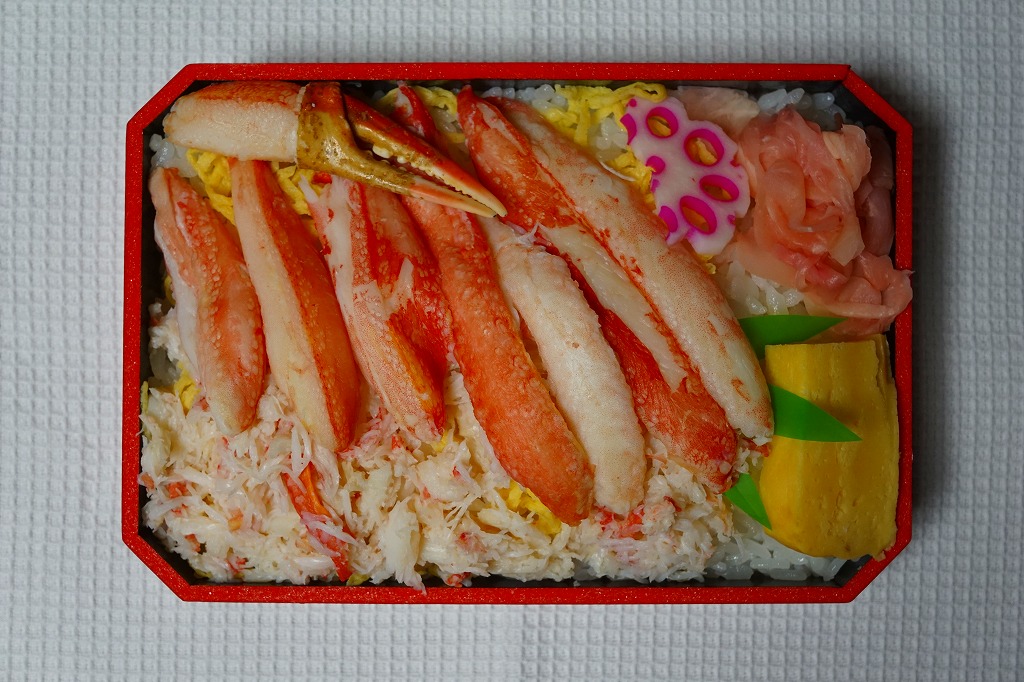 2018(平成30)年1月の京王百貨店の駅弁大会と阪神百貨店の駅弁大会で販売。現地で売られるかは不詳。四角い容器に酢飯を敷き、カニの棒肉をぼぼぼぼっと並べ、カニほぐし身とカニ爪、錦糸卵、玉子焼、甘酢生姜で覆う。飯より多いと感じるくらいのカニだらけ。価格は2018年の発売時や購入時で1,860円、2019年時点で1,890円。2021−2022年シーズンまでの販売か。