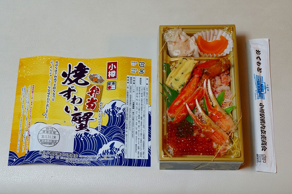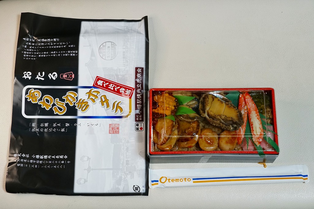 小樽駅は、JTB時刻表でも京王百貨店の駅弁大会でも、駅弁を売る駅と紹介される。しかし今の小樽駅で、駅弁の存在を感じることは難しい。今回の訪問では午前中に駅弁はなく、昼下がりにはこの商品を残して完売、予備知識を得て駅舎を出て訪れた国鉄時代からの駅弁屋の弁当店はなんと日祝定休。今はオーバーツーリズムという外来語が使える、観光客で満員の小樽駅で、都会の催事で賑やかな海鮮駅弁たちには出会えなかった。