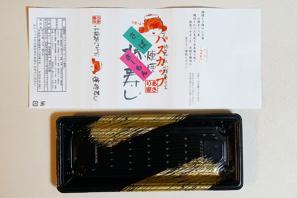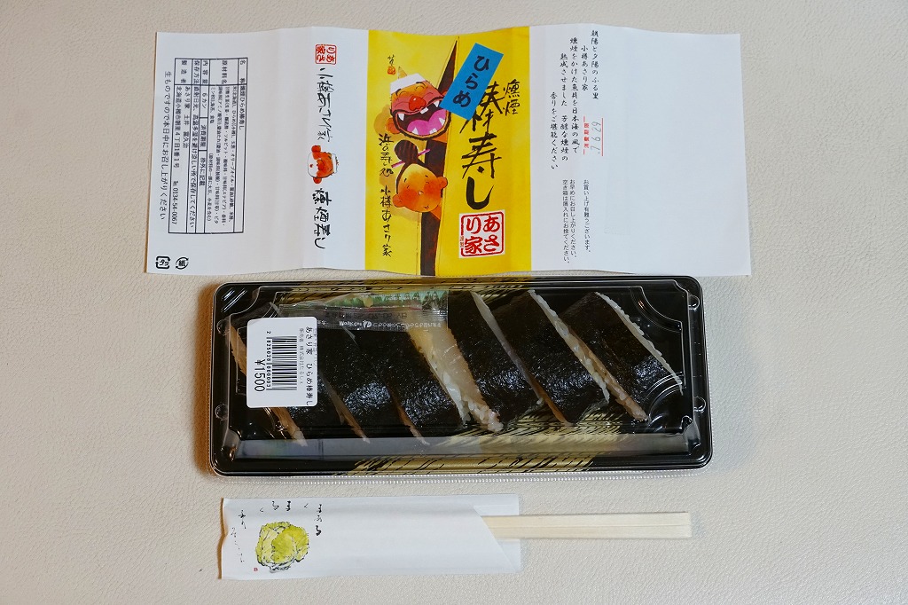 これを買った土産物店に入荷する小樽駅弁は、2024年10月から土休日に「駅弁はお休みです」となってしまった。週末の観光客は従前の駅弁に出会えなくなり、これからはこれらの棒寿司が小樽駅の駅弁となるのだろう。