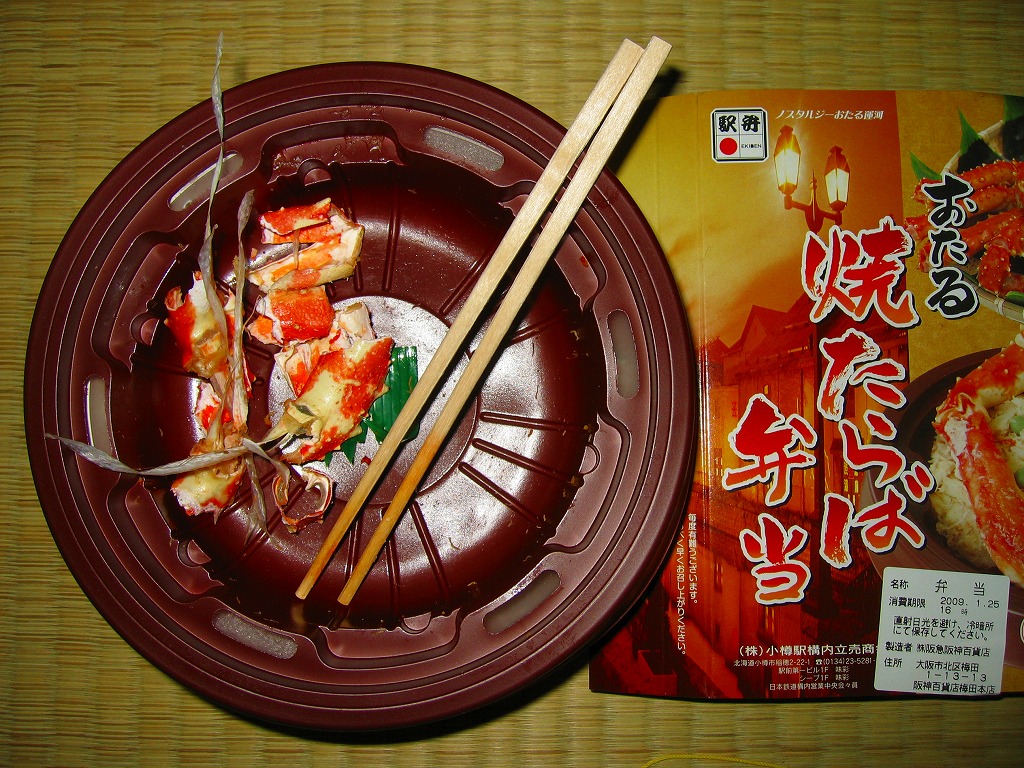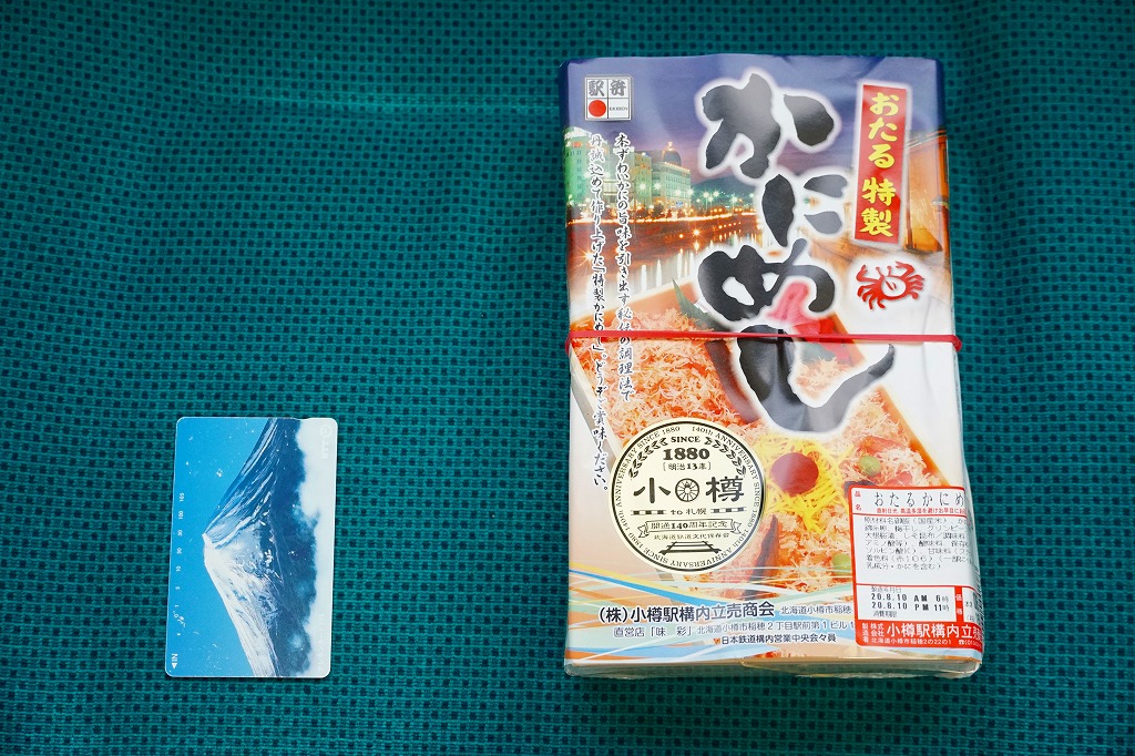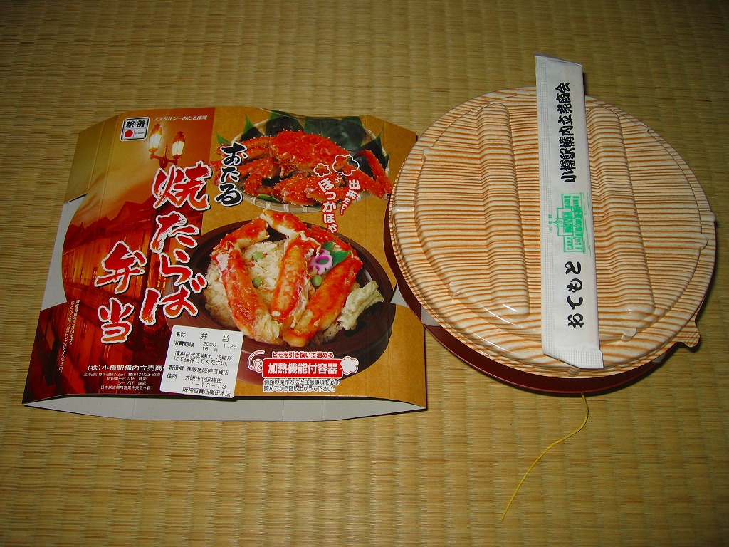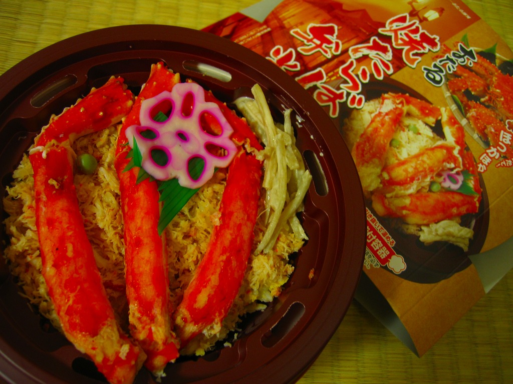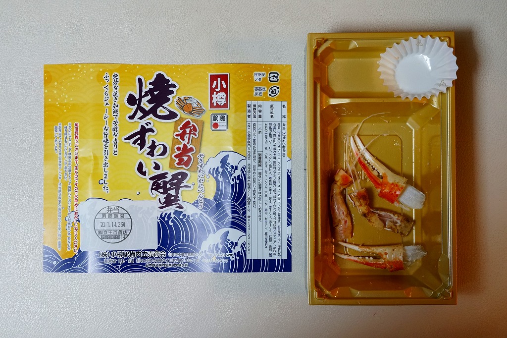 通常のカニ飯駅弁の倍近い価格もあり、カニの風味はもちろん分量もたっぷり、これを食べたら普通に戻れないかもしれない。しかし残念ながらこの商品は、阪神百貨店の駅弁大会限定ながら小樽駅の駅弁を名乗る疑義駅弁だった模様。価格は2009年の購入時で1,890円、2014年4月の消費税率改定で1,950円。現存しない模様。