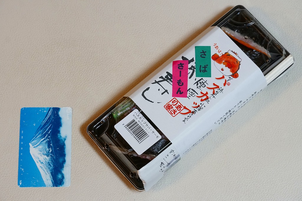 2007(平成19)年の秋に駅デビューか。地元で人気とテレビでも紹介される、2006年に朝里駅前で開業した寿司屋と、北海道キヨスクとの共同開発商品だという。今回購入のサバの他に、サーモン版とサンマ版があるそうな。