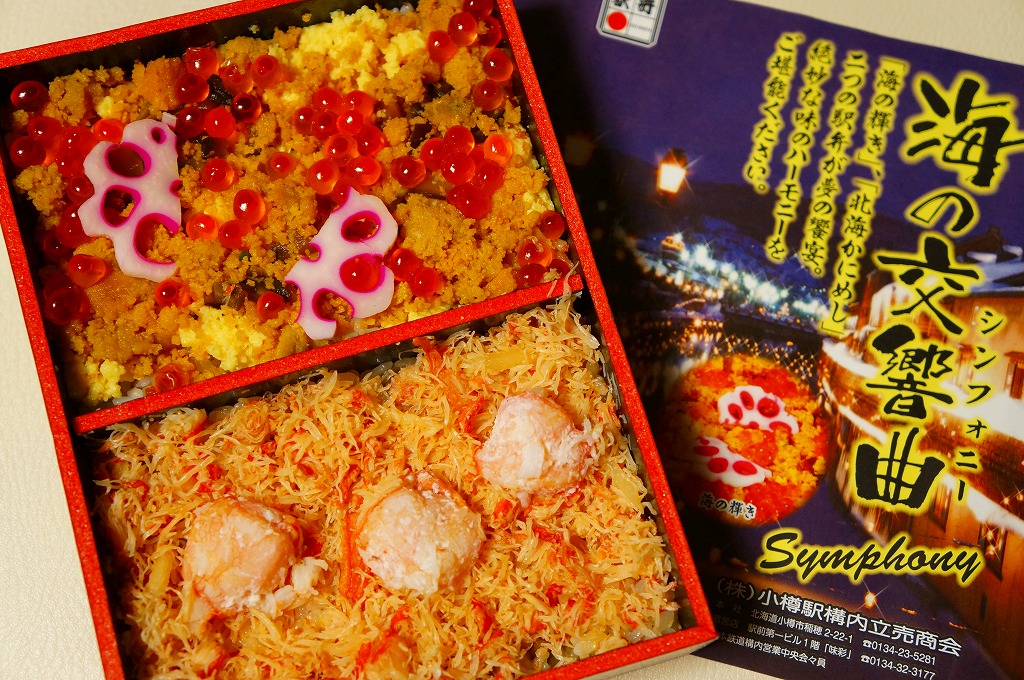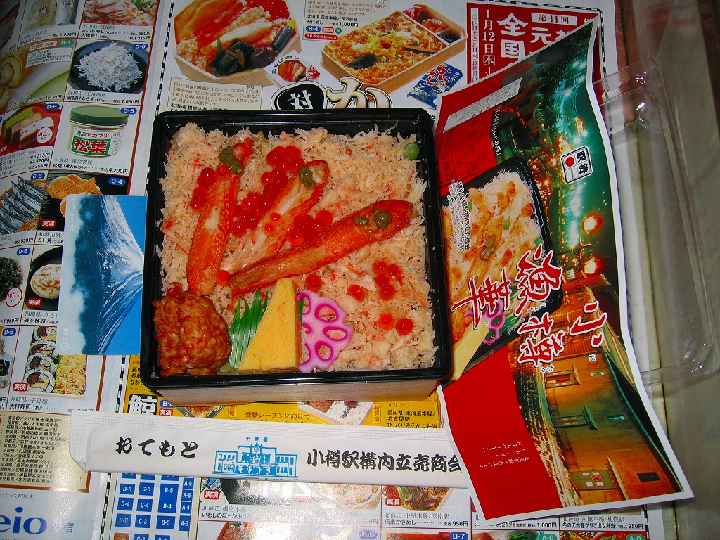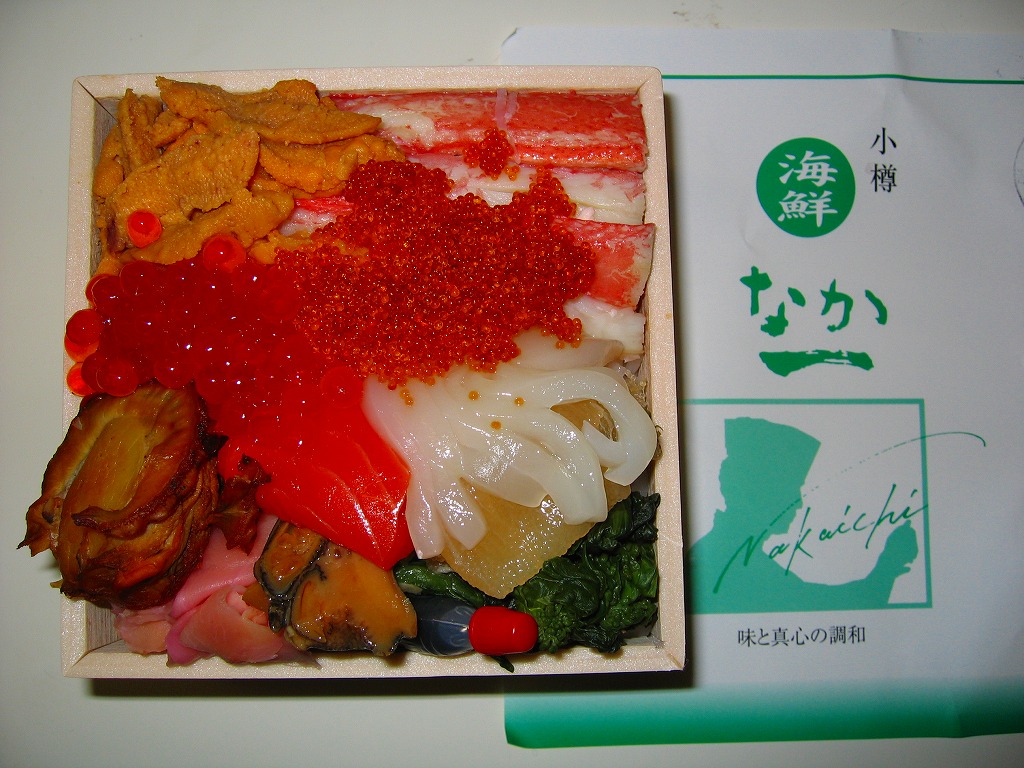 2006(平成18)年1月の京王百貨店の駅弁大会で、1,260円にて実演販売。上げ底上げ蓋で中身の見栄えが強調される催事海鮮弁当向けプラ容器を、その中身と小樽運河の夜景写真を載せた紙帯で巻いて、セロテープで留める。中身はウニの混ぜ御飯の上をカニほぐし身で覆い、カニ脚、イクラ、玉子焼などを載せるもの。価格は2014年4月の消費税率改定で1,290円。現存しない模様。