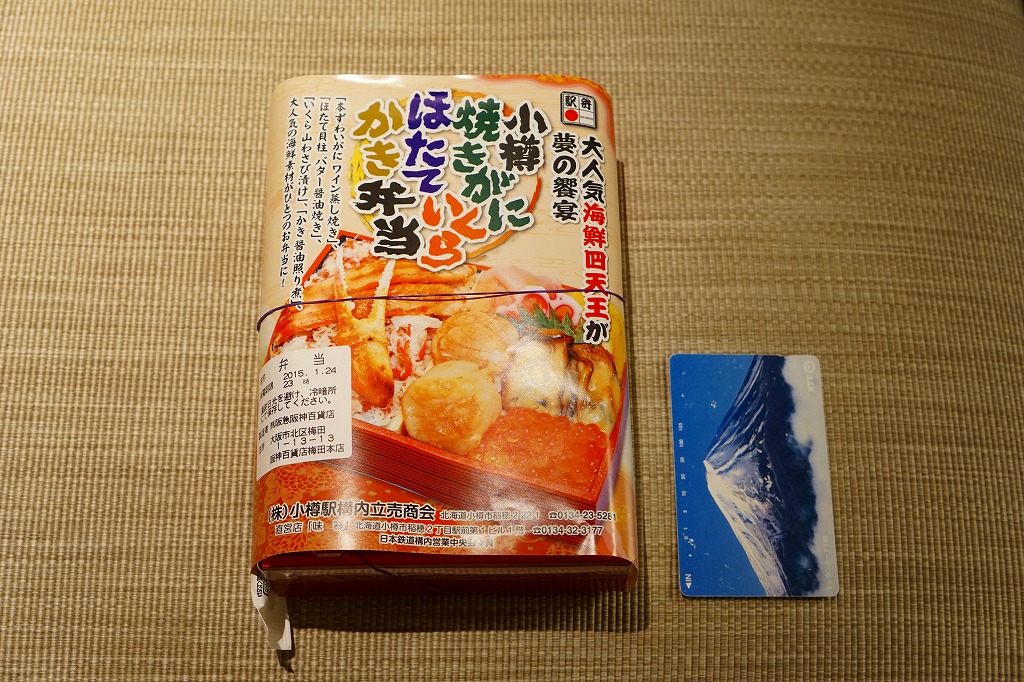 2009(平成21)年1月8日に購入した、小樽駅弁の掛紙。この絵柄のものが、長く使われたと思う。中身と夜景の写真を使う構成は、上記の2022年のものと変わらない。縦長の紙で、写真も立っている。