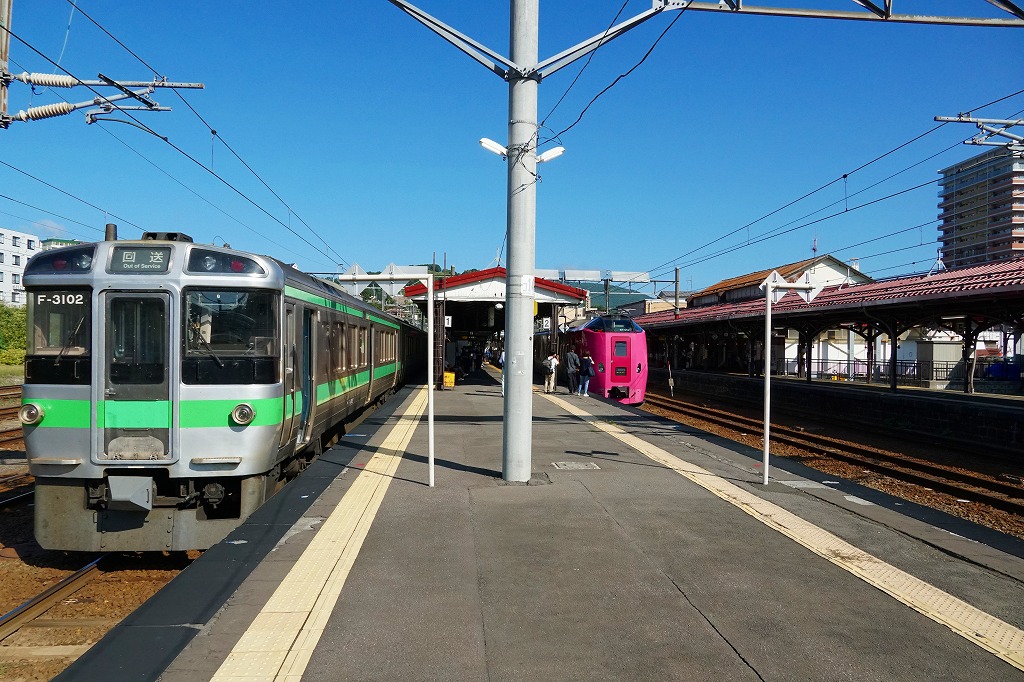 札幌駅から快速電車で30分強。小樽市は札幌市の北西で日本海に面した、人口約11万人の港町。北海道開拓の玄関口として19世紀末に貿易港として繁栄、第二次大戦後は大陸側の共産圏化やエネルギー革命などにより衰退し、現在は札幌市のベッドタウンであるとともに、旧市街地の観光で賑わう。駅弁は駅舎の土産物店に置かれることがある。1903(明治36)年6月28日開業、北海道小樽市稲穂2丁目。