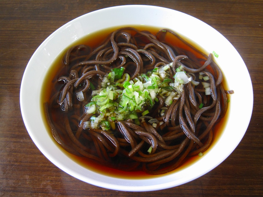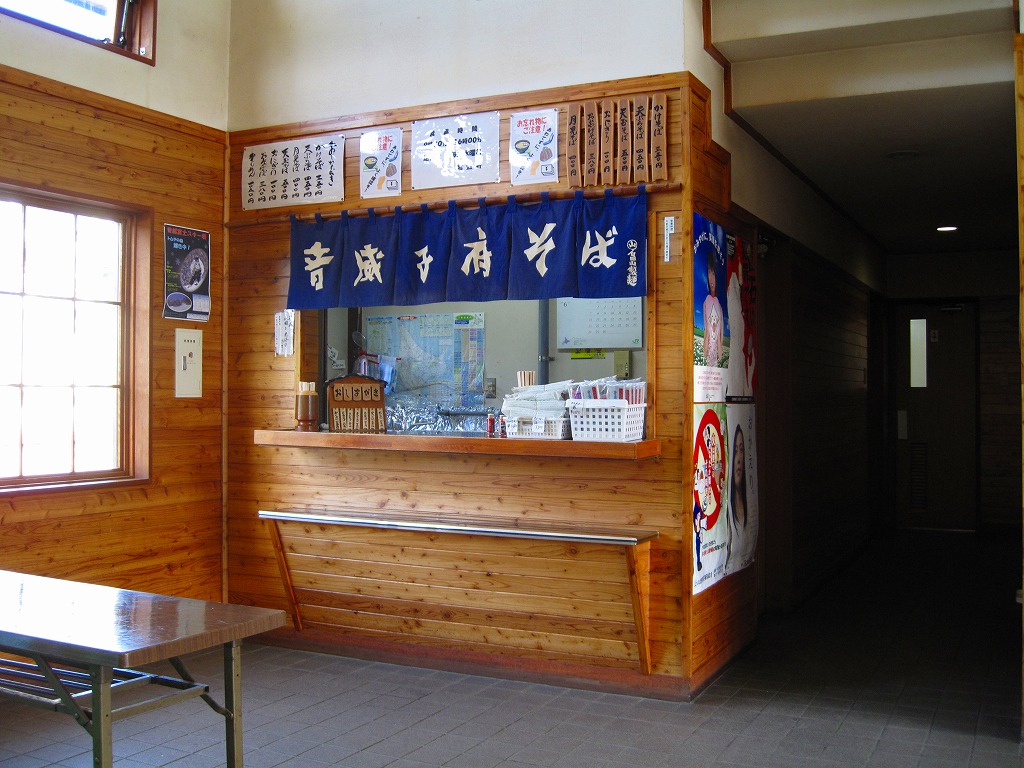 訪問時のメニューは「かけそば」350円「天ぷらそば」450円「月見そば」400円「天玉そば」500円「おにぎり」100円「おみやげそば」380円「かんめん」1,050円で、後2者は販売商品。駅そば日本一とも言われるこのそばは、何も入れず「かけそば」で味わうべきだと思う。