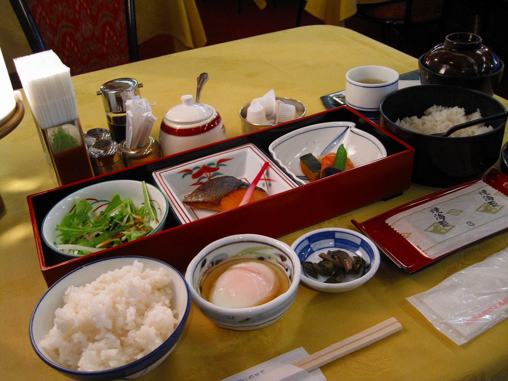 最近のホテルの朝食はたいていバイキング形式なので、若者や成人男性であれば、これしかないのかと嘆きそうだ。しかし白御飯はおかわり自由なので、45分の制限時間を守ることで満腹にもなれる。洋朝食のパンのおかわりは、できないことがある模様。そんな体験も、2015年3月13日限りの列車の廃止により過去帳入りした。