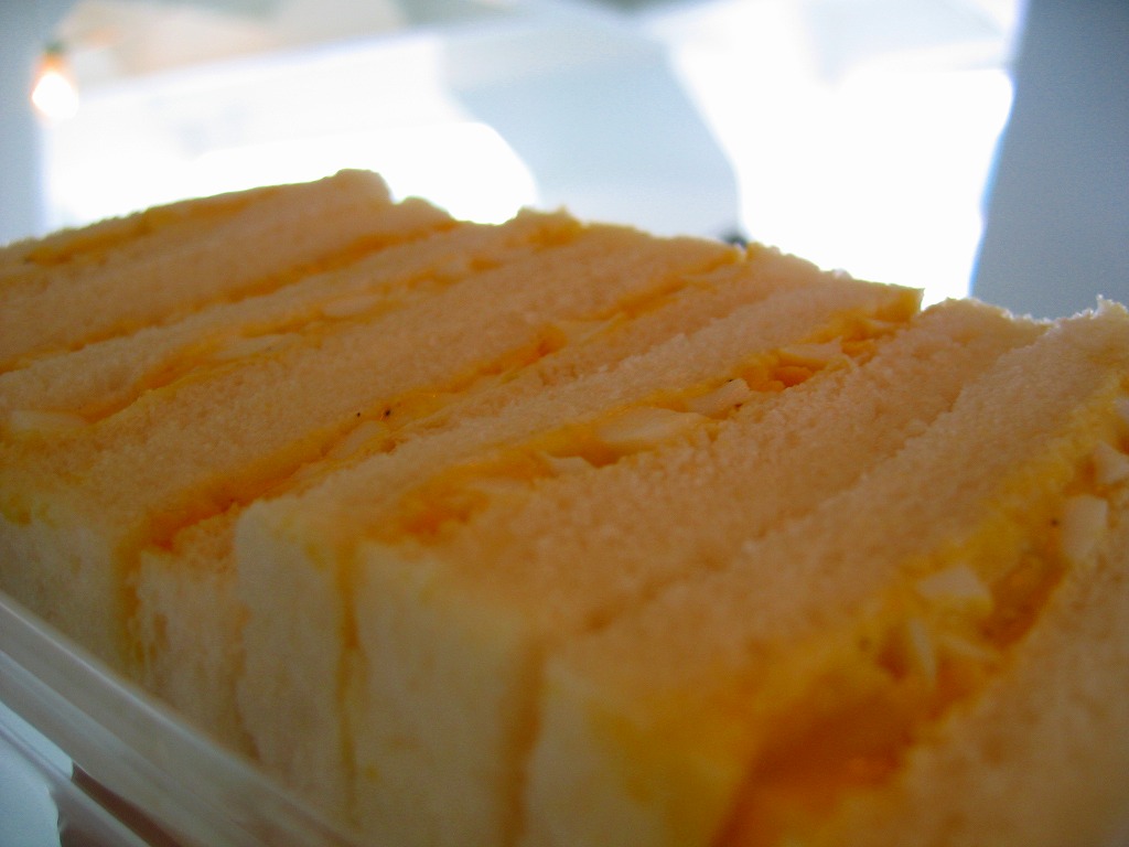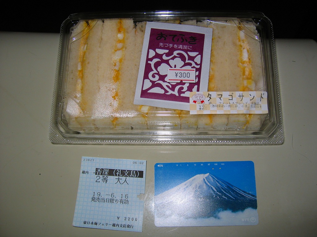 これは駅弁ではなく、利尻や礼文、時にはサハリンへ航路が出る稚内のフェリーターミナルで買ったサンドイッチ。中身は名前どおり、タマゴサンドの6切れ詰め。お弁当らしきものは、ここにはなかった。