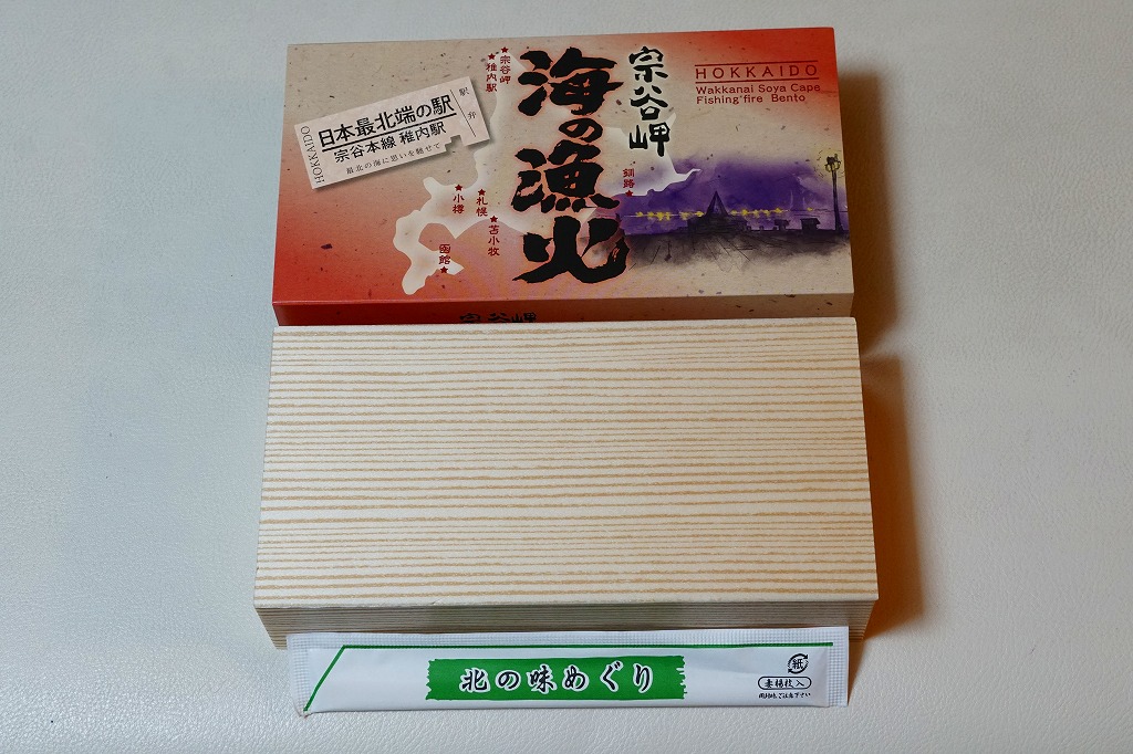 鉄道で訪れた今回の稚内は、再開発でできた立派な駅ビルが正月休みで、パンとコーヒーしか売っていなかったため、このような弁当が買えて本当に助かった。再開発前で駅舎の中にキヨスクと立ち食いそば店があった頃は、鉄道旅行でも食べ物に困ることはなかった。