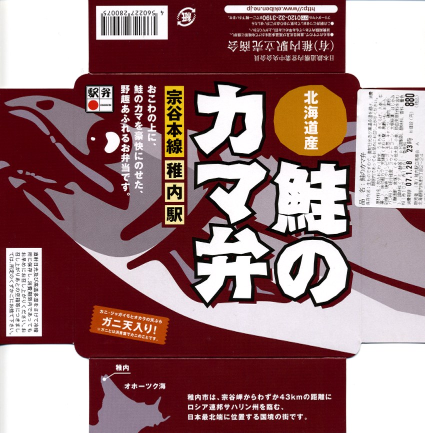 それ以前に、稚内駅で売られる駅弁に「鮭のカマ弁」なんて、本当にあるのかどうか。この商品は2014年時点で現存しない模様。