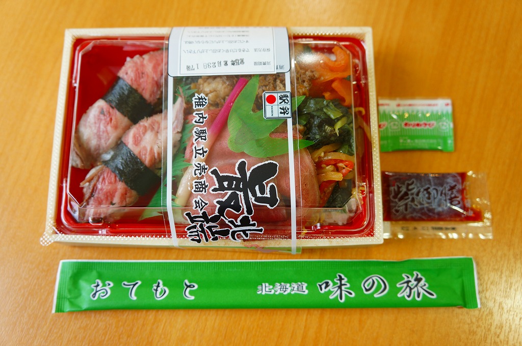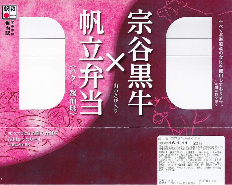 宗谷黒牛は、稚内駅より先に札幌駅で駅弁になっている。市町村と農協の出資で始まった宗谷黒牛は、2007(平成19)年に昔の表現でいう民間への払い下げにより、現在は株式会社宗谷岬牧場の事業。日本最北のブランド牛を売りに、関東や関西やネット通販でよく売られるが、これはブランドというより商品名であり、実際に他のブランド牛とは異なり「A5ランク」のような牛枝肉取引規格での基準がない。この黒毛和種と乳牛の交雑種は、宗谷岬から歩いて行ける丘の上で生産されているが、旭川で加工し、神奈川と兵庫となぜか秋田へ送られるので、稚内ではあまり買われたり食べられたりしていない模様。