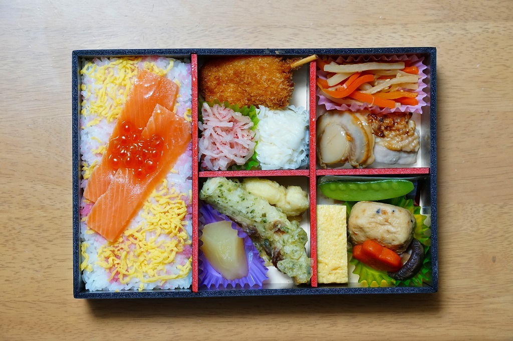 東北新幹線の新青森駅開業10周年を記念し、2020(令和2)年12月12日から1,200円で、新青森、青森、八戸、盛岡の各駅で6,000個を販売。12にこだわったように見えるが理由は不明で、そもそも新幹線の開業は12月4日だった。中身は掛紙の写真のとおり、御飯に青森海鮮ちらし寿司と同じサーモン棒2本を載せ、ホタテ照焼と鶏照焼、きんぴらごぼう、煮物、玉子焼、イカ焼売とカニ焼売とトンカツ、ちくわ磯辺揚、リンゴのシロップ漬など、おかずがたっぷり。紹介記事では2021年4月以降も売られたとするが、収穫報告は3月までのものしか出てこない。