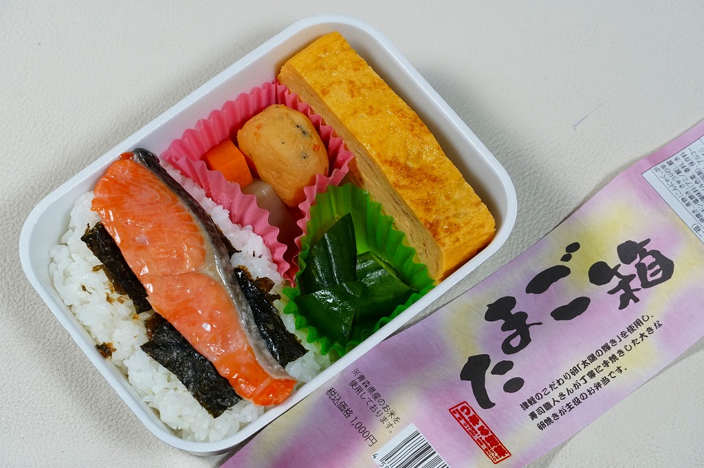 2025(令和7)年10月1日に新青森駅などで発売、同日からのJR東日本の駅弁キャンペーン「駅弁味の陣2025」にエントリー。同キャンペーンでは復刻でなく新作の駅弁と紹介したが、過去に2012年から2019年まで売られたことがあるはず。当時の掛紙と同じような絵柄の、商品名の紙帯を巻いたホカ弁向け発泡材容器の半分に、白飯を詰め、昆布佃煮と海苔を貼り、サーモンの塩焼きを置く。残り半分に、津軽のこだわり卵「太陽の輝き」を使ったという大きな卵焼き、にんじんとこんにゃくとがんもどきの煮物、自家製きゅうりの辛子漬けを詰める。この大胆で整然とした海苔弁当は、駅弁味の陣2025で対象63駅弁中3番手タイの「味覚賞」を獲得した。