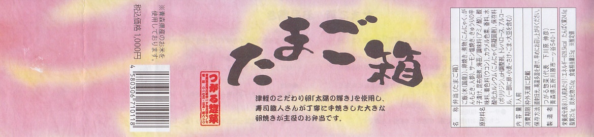 普段は新青森駅での販売。東京駅での駅弁大会の常連でもある。しかしこともあろうにNREは東京駅の駅弁大会でこれを五所川原駅の駅弁として紹介し続けている。この駅弁の調製元の所在地は五所川原であるが、五能線の五所川原駅に駅弁販売の実態はないようで、おそらく調製元にとって不本意な形で疑義駅弁が創られてしまった。半年間ほどの販売か。