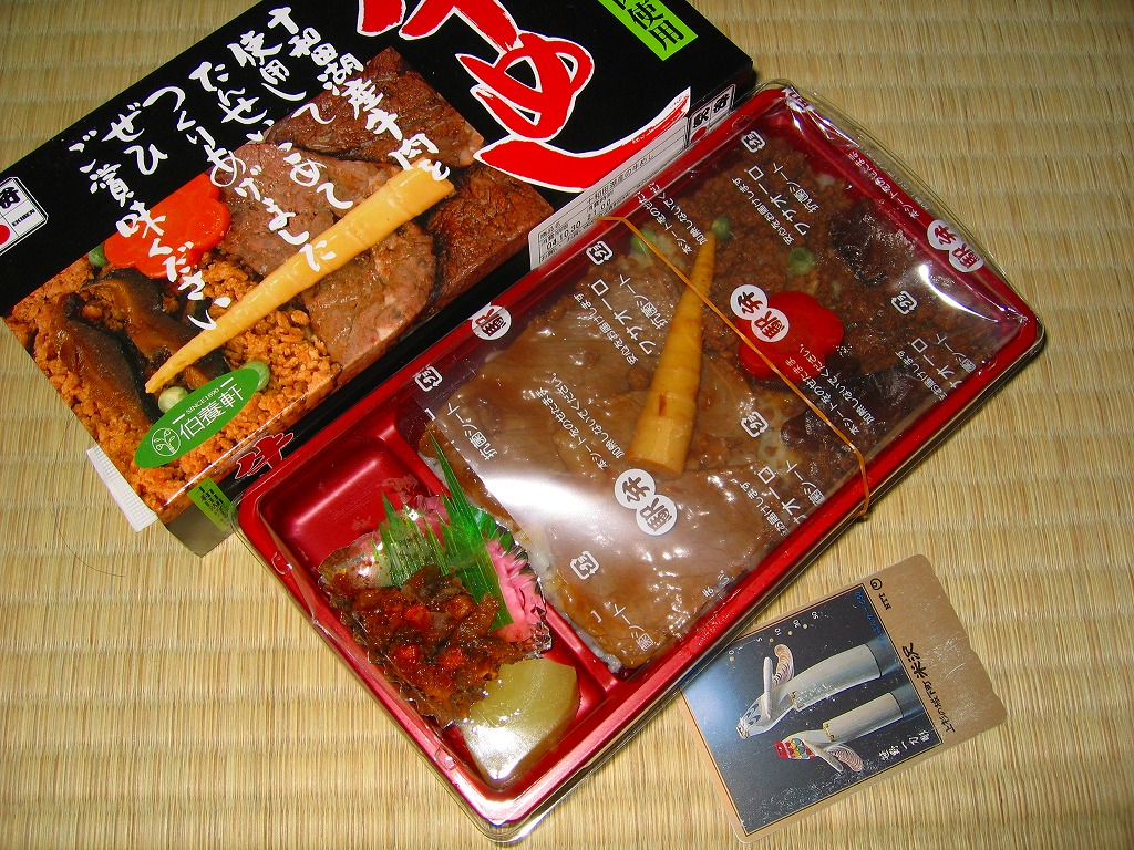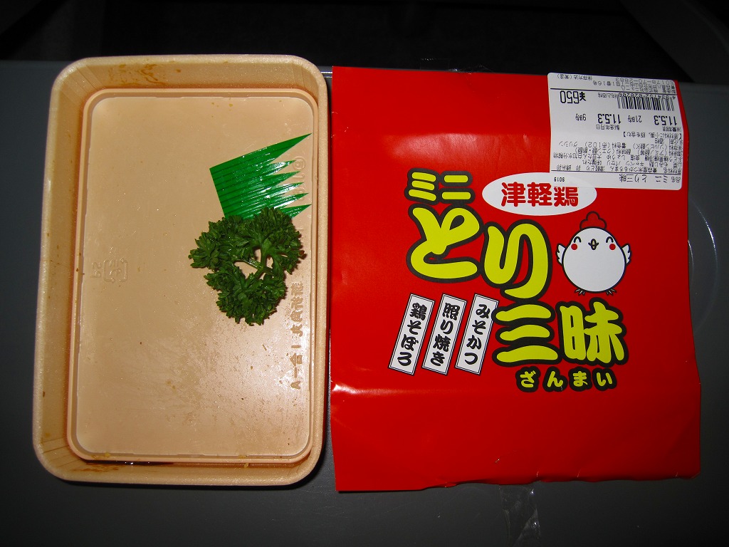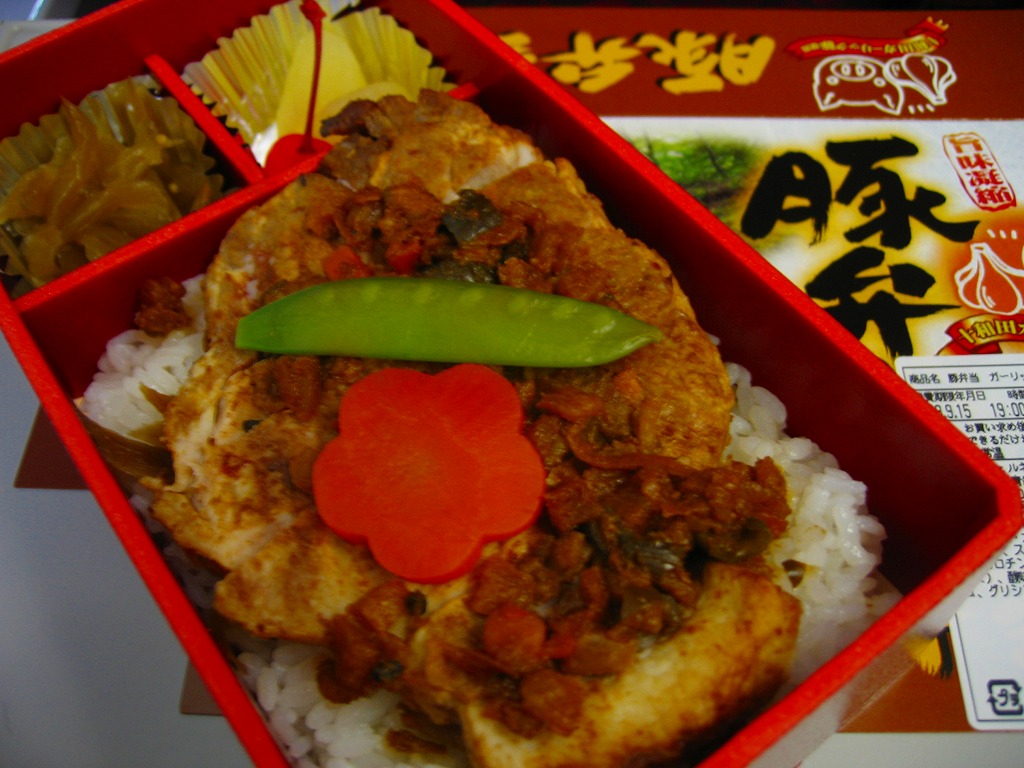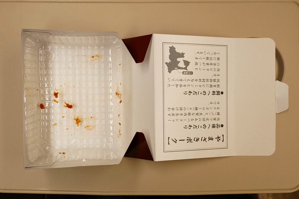 メインの豚肉は味付けがこってりかつあっさり、柔らかいけれど平ゴム状の脂肪が噛み切れずに残る、優と不可の両方を備えた感じ。これも不思議と収穫報告に乏しいのは、名前が一般的なことと、遠隔地での輸送販売がないからか。2009年頃までの販売か。
