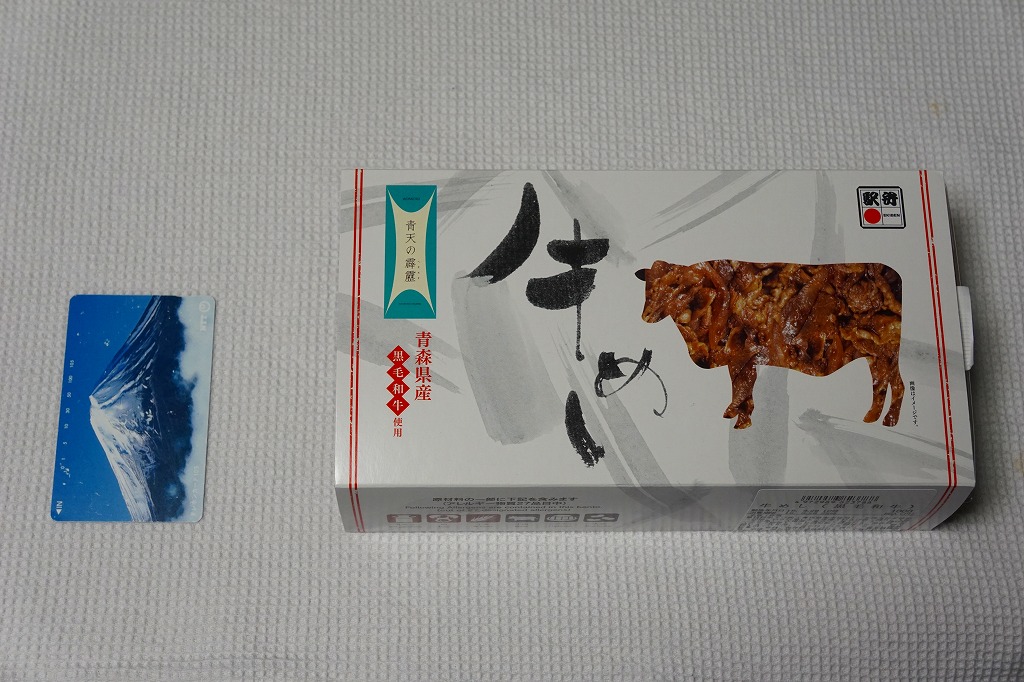この名と姿では2017(平成29)年の発売か。2018年のJR東日本「駅弁味の陣2018」にエントリー。中身はスリーブの写真のとおり、白飯を牛肉で覆い、わさび菜と大根漬を添える、ありふれた構成の牛肉駅弁。たしかに柔らかくはある牛肉煮がやや厚めで、B級グルメの味わい。調製元の青森からの撤退により、2019年9月限りで終売となった。