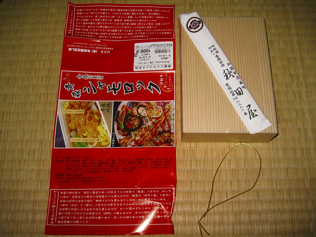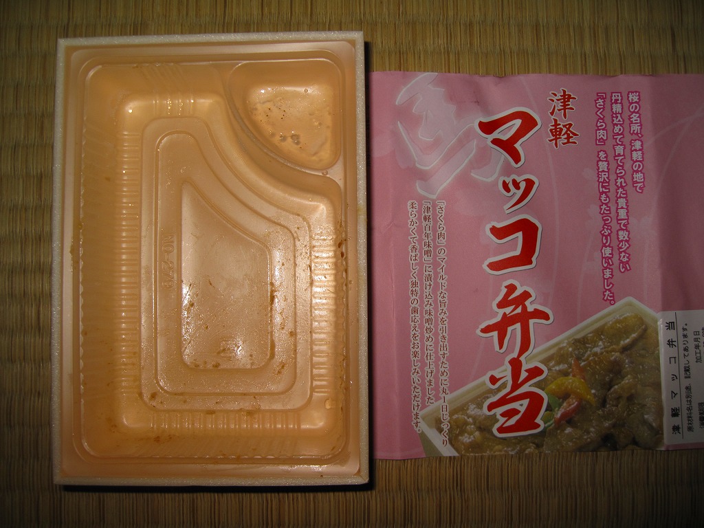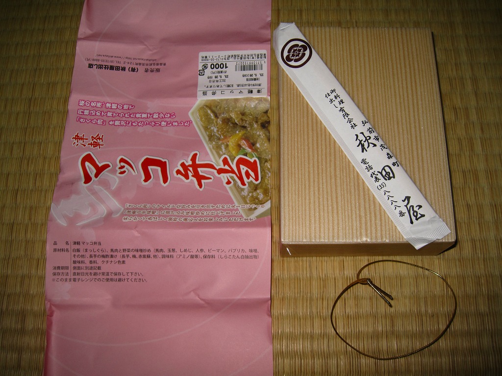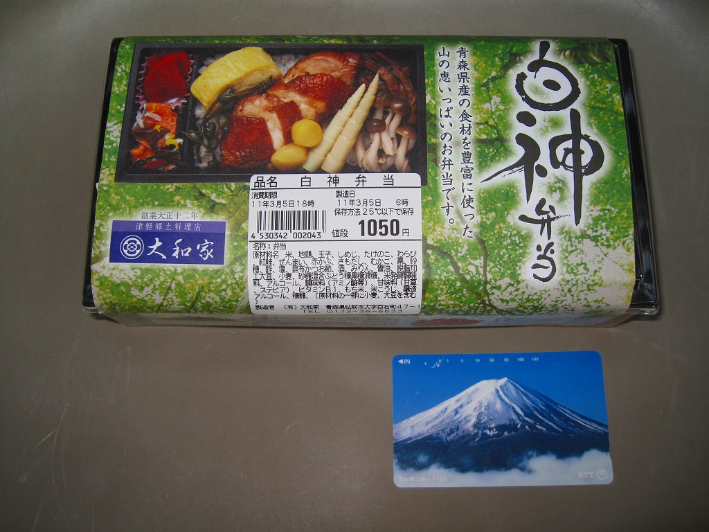 弘前駅から世界自然遺産の白神山地までは距離も時間も長い印象があるが、白神を名乗る駅弁がたくさんある秋田駅のほうが距離では倍も遠い。しかも登録面積の74%は青森県側であったり、秋田県側ではブナ林の伐採のための林道が完成していたりと、白神山地を世界遺産まで押し上げた功績は青森県側にあるような気もする。なお、この調製元は同じ名前の青森空弁を以前から販売していた。2012年頃までの販売か。