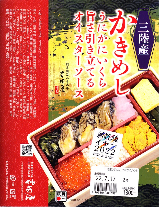 明治時代からの八戸駅の駅弁屋である調製元は、2010年には東北新幹線の全線開業で新青森駅に進出し、2013年には東京に工場を構え、2015年の北海道新幹線開業では新函館北斗駅の駅弁屋にもなるようなので、いったいどこの駅の駅弁や駅弁屋と呼ぶべきか。