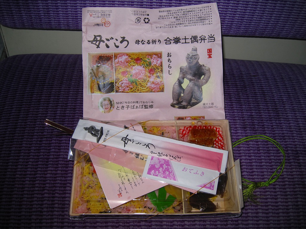 東北新幹線の新青森開業に向けて、2010(平成22)年5月20日に発売。機に紙を貼り合わせた薄手の長方形の容器に透明なふたをして、中身と土偶の写真や商品名に宣伝文などを印刷した掛紙で巻く。中身は「つがるロマン」の酢飯の上に錦糸卵、刻み海苔、タラそぼろ、シイタケ、ニンジン、かんぴょうなどを使うちらしずしに、オランダこんにゃく、七尾たくわん、梅酢生姜、いちご煮ゼリーを添えるもの。
