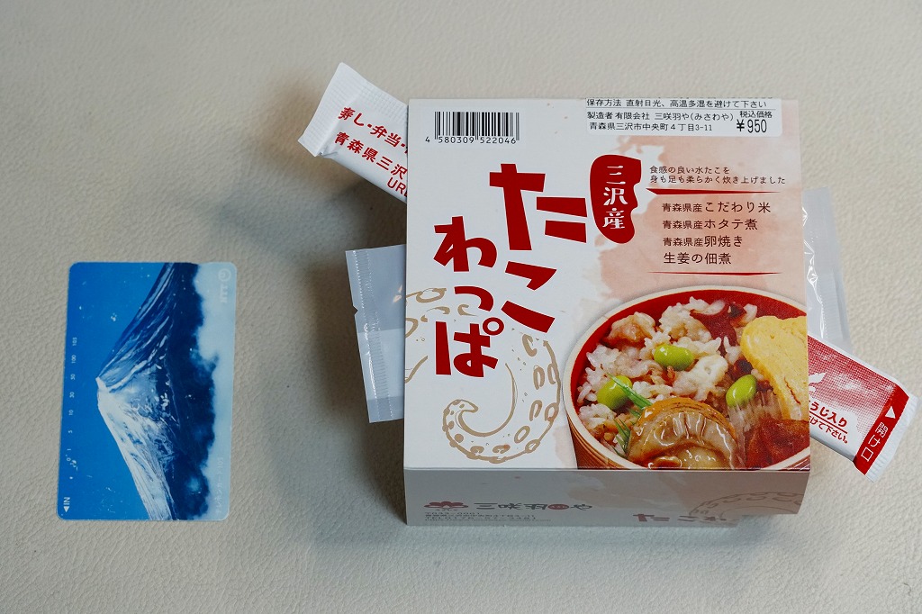 2021(令和3)年7月までに八戸駅や新青森駅で発売か。同年10月のJR東日本の駅弁キャンペーン「駅弁味の陣2021」にエントリー。丸い容器にタコの炊込飯を詰め、ホタテ、玉子焼、枝豆、生姜佃煮で彩る。見た目は普通のお惣菜でも、ミズダコは三沢産(三沢漁港での水揚げという意味か)、米やホタテや玉子焼は青森産と、地元の食材にこだわった。風味の広がりと千円を切る価格で、有名な西明石駅弁「ひっぱりだこ飯」や、伝統の三原駅弁「元祖珍辨たこめし」に並べるか。価格は2021年の発売時で950円、2024年時点で1,000円、2025年時点で1,110円。
