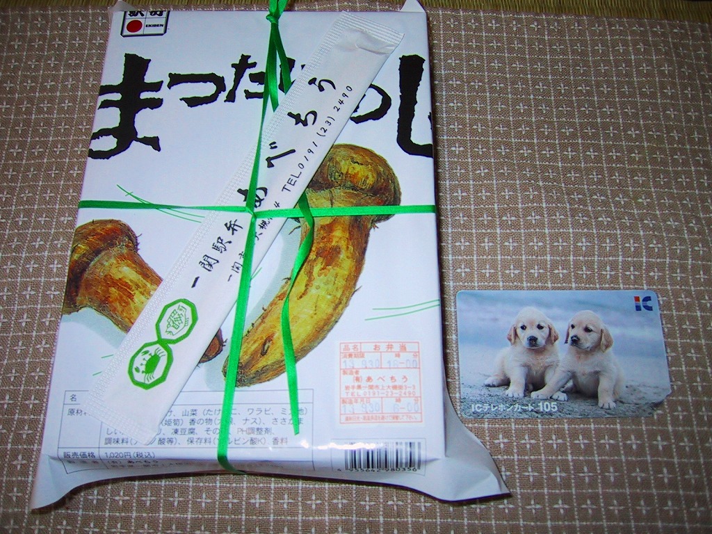 1960年代の調製と思われる、昔の一ノ関駅弁の掛紙。上記の駅弁「きのこめし」と同じ絵柄であるが、価格の安さと電話番号の桁数の少なさから、こちらのほうが古そう。この駅弁の販売は1970年代までか。