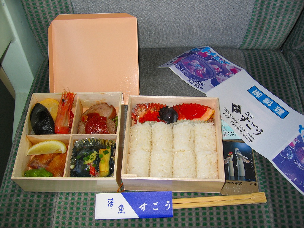 毎年夏に仙台駅と八戸駅を太平洋沿岸経由で結んだ、日本最長所要時間昼行鈍行「リアス・シーライナー」の、2004年シーズンの7月31日から8月8日の運転時に、その仙台行列車を対象に三陸鉄道久慈駅から乗り込む車内販売で販売された3種類の特製弁当のうちひとつ。名前は車内の掲示による。
