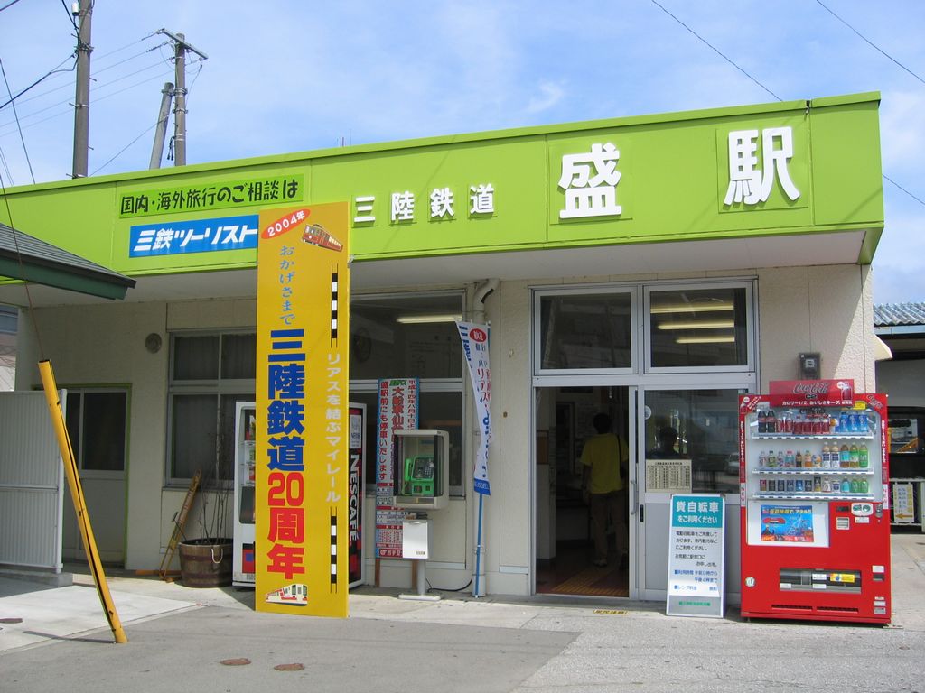 仙台から新幹線と大船渡線を乗り継いで約4時間の、JR(専用道バス路線)・三陸鉄道・岩手開発鉄道(現在は貨物線)の3社の接続駅。大船渡市は岩手県の南東部で太平洋に面する、人口約3万の港町。県有数の漁港を抱える遠洋漁業の基地。駅弁はないが、東日本大震災でイベント列車が来なくなる前までは、乗客を相手に弁当など台売りすることがあった。1935(昭和10)年9月29日開業、岩手県大船渡市盛町字東町裏。