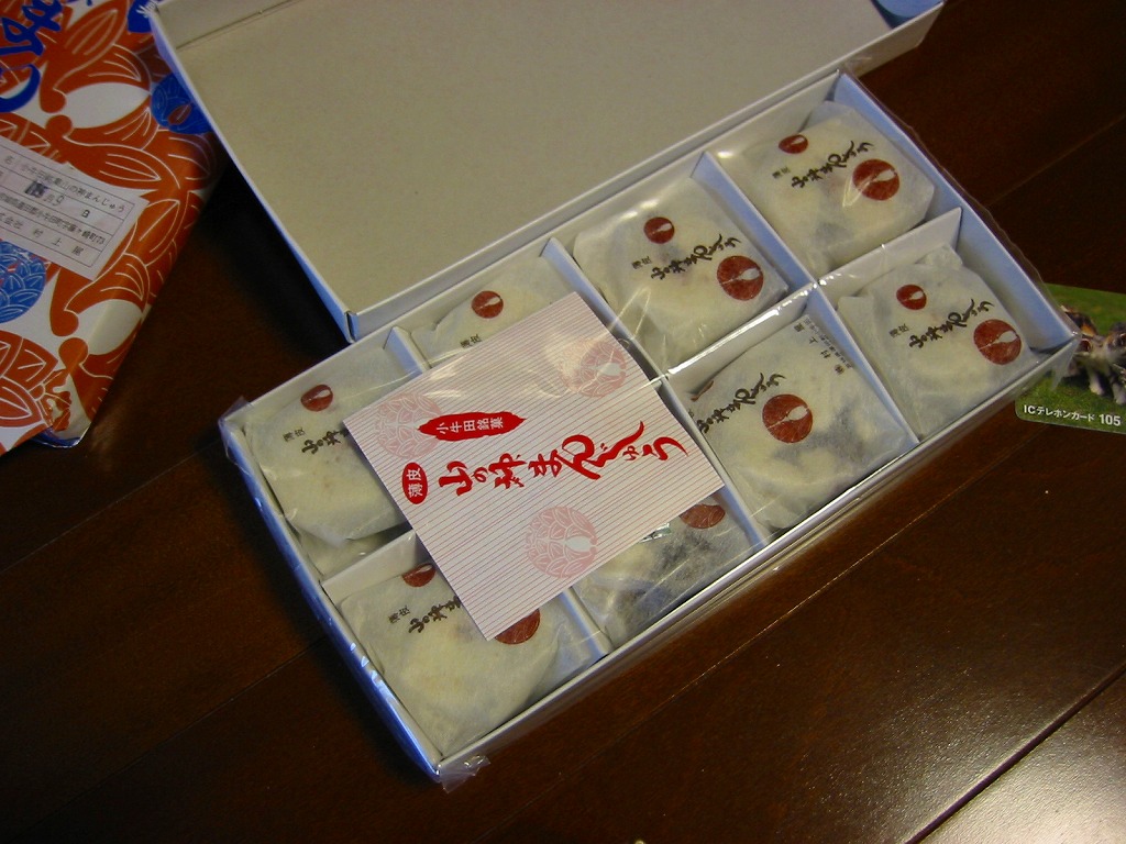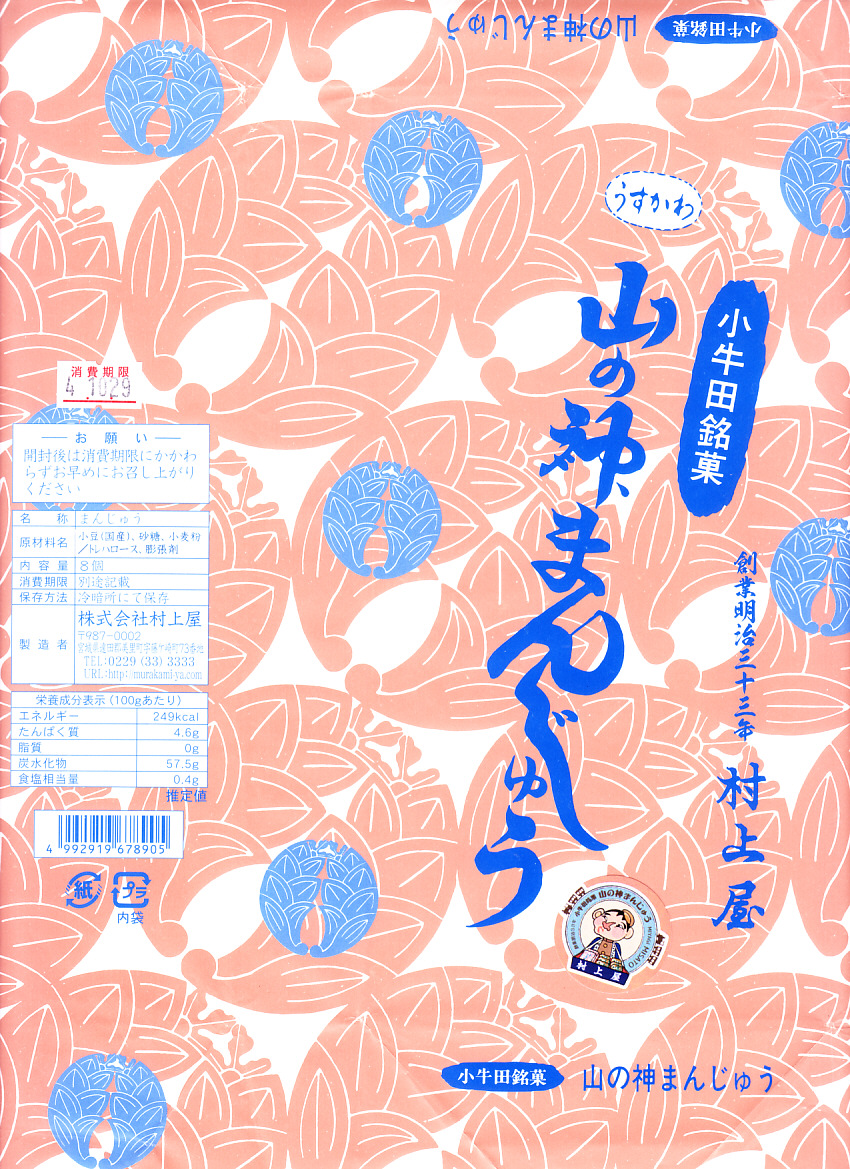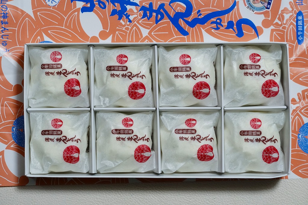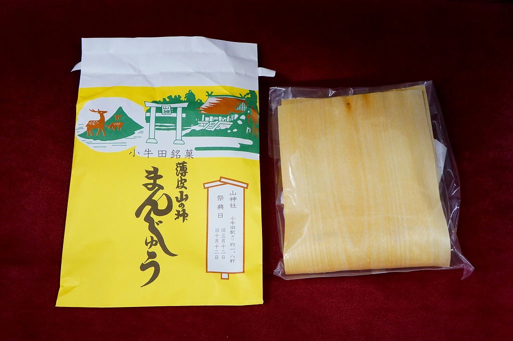 明治時代からのルーツを持つという、かつて小牛田駅の駅売り名物であった饅頭で、現代に唯一生き残ったもの。2017(平成29)年までに小牛田駅から売店が消えたため、今は駅では買えないが、旧駅舎の観光案内所や、駅前の調製元や、東北新幹線古川駅のコンビニで買うことができる。パッケージの記載によると、1141年の創建で安産の神様として知られる小牛田の山神社(やまのかみしゃ)の、門前町の名物饅頭が鉄道駅に進出したものだそうな。