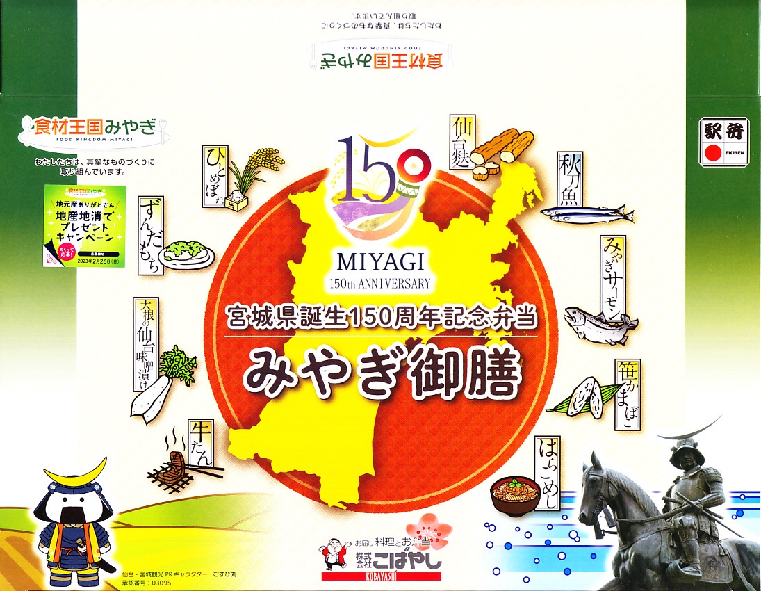 2022(令和4)年2月17日に調製元と仙台駅で発売。その名のとおり、宮城県の誕生150周年を記念した弁当であり、専用の紙箱のふたには宮城県土のシルエットに宮城の食材を並べ、裏面には宮城県150年の略史を掲載する。