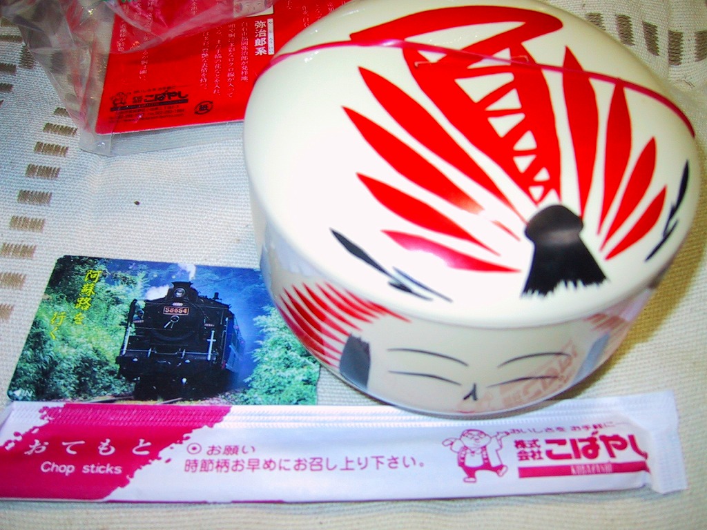 創作駅弁の他の2種類は、日本レストランエンタプライズの「仙山芭蕉めぐり」と「がんこおやじ」。当初は3か月間の期間限定販売を予定していたようだが、「がんこおやじ」を除く2品は2010年時点でも販売が続いた。2010年頃までの販売か。