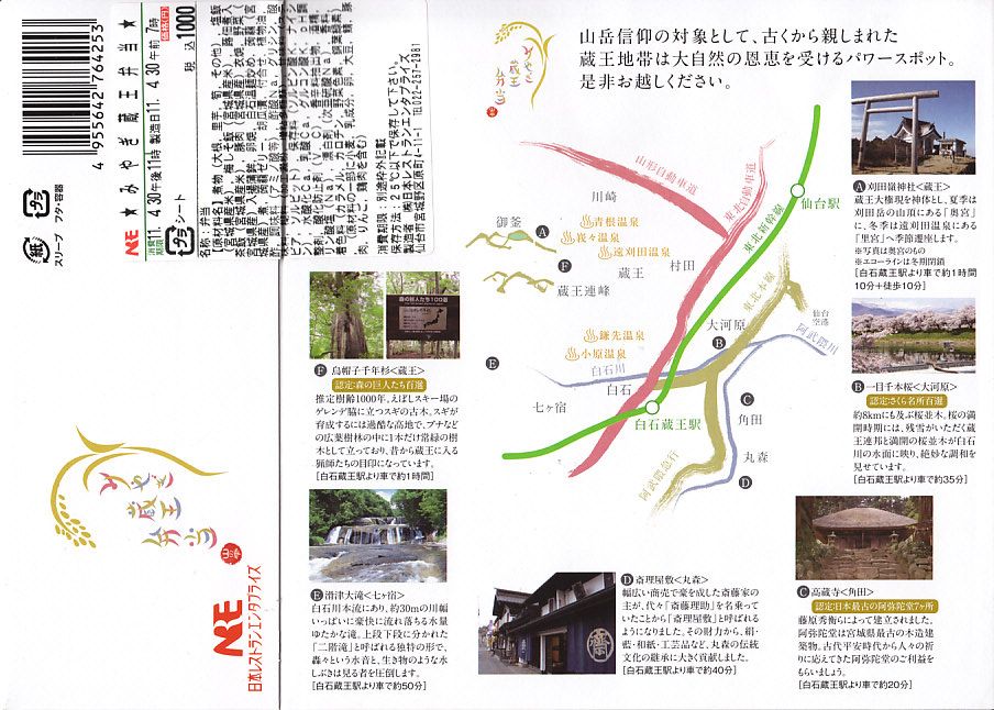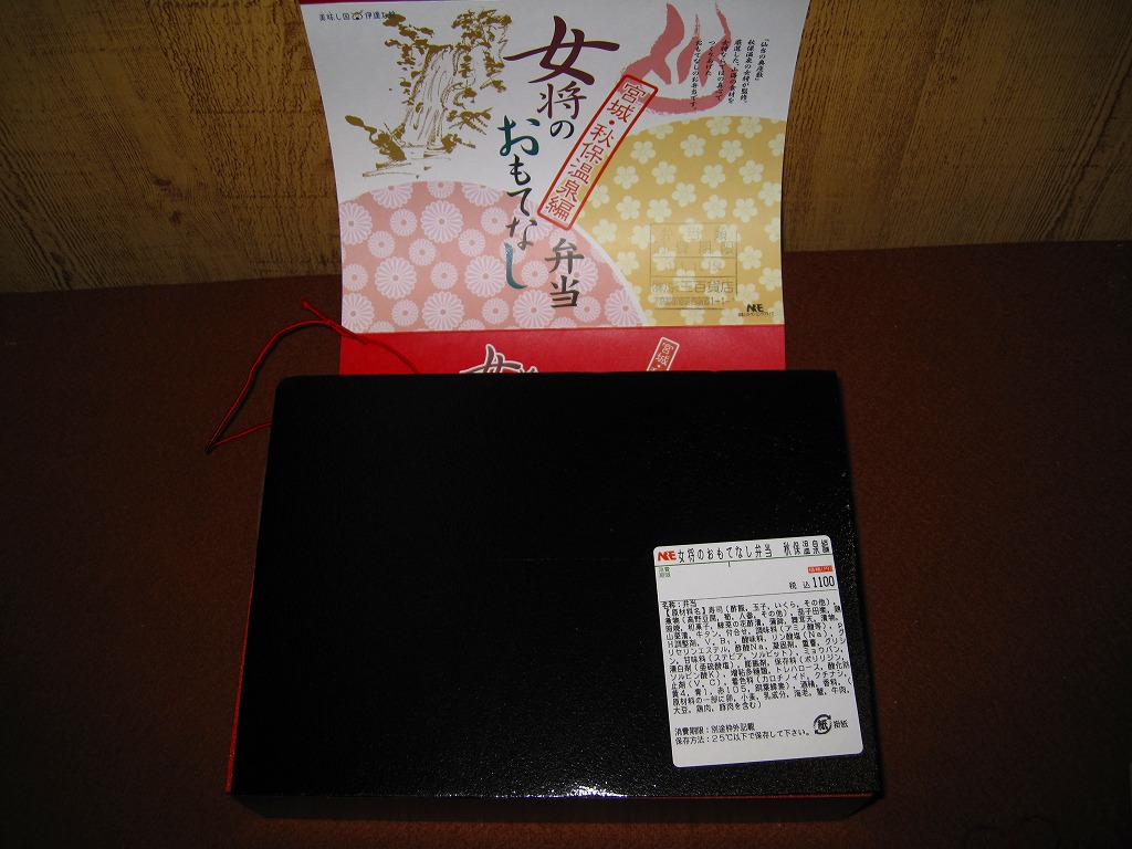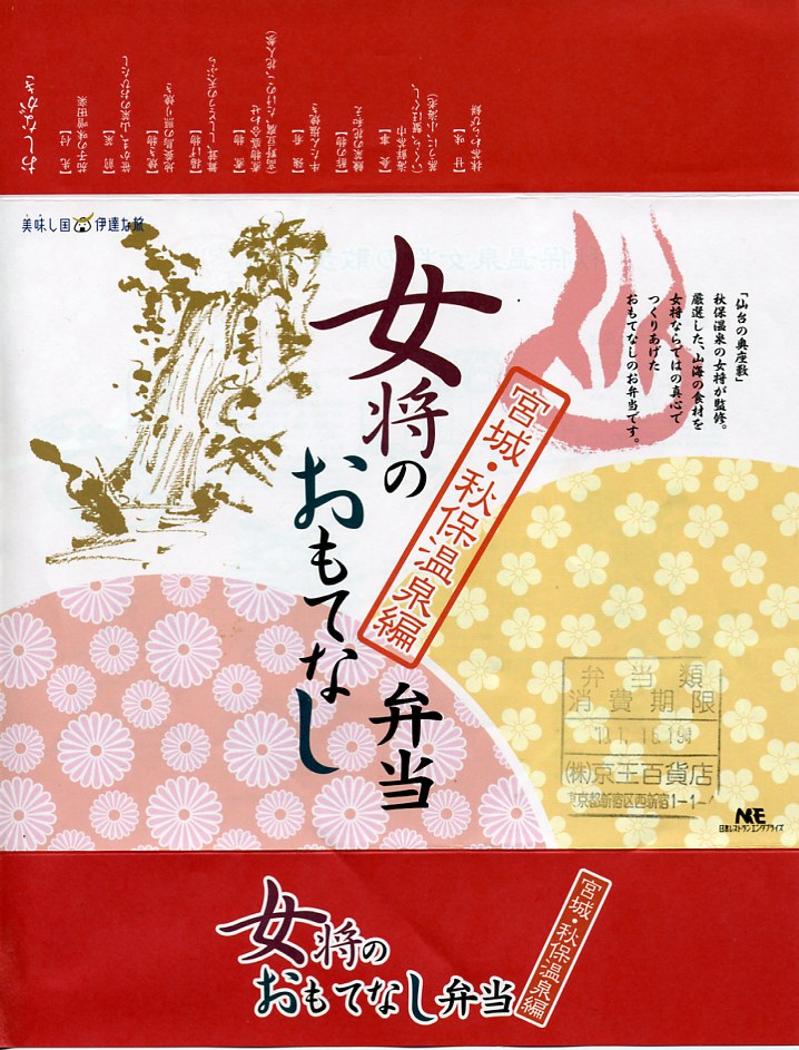 中身と秋保との関係は知識がないし、掛紙にも書かれないので分からないが、登場順と異なり先に食べた鳴子編や松島編と同じく、質の高く雰囲気の良いお弁当。調製印が示すとおりデパートでの実演販売が行われるくらいの人気と評判を得ているのだろう。今回の京王百貨店の駅弁大会でも一日500個が売れたそうな。価格は2007年の発売時や2010年の購入時で1,100円、2016年時点で1,150円。2020年までの販売か。