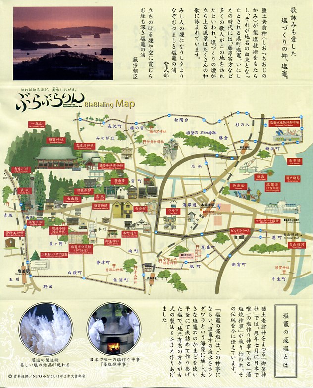 海藻を使い濃縮した塩水を釜で煮詰めて作った塩を「藻塩(もしお)」といい、この駅弁には塩竃市内でホンダワラを使い製造した藻塩が使われるとともに、袋詰めでも添付される。塩の味など直接なめない限り変わらないと思うし、1985年から2002年にかけて行われた塩の製造や販売に関する規制緩和を受けて全国に乱立したブランド塩の派手な売り文句には公正取引委員会の警告が出たほどだが、塩竃市では地域おこしの一環として藻塩が活用されている。なお、本文中でシオガマの表記が揺れ動いているのは誤記ではなく、それぞれで使い分けられている。