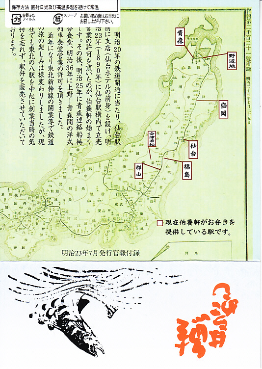 2022(令和4)年10月1日に仙台駅で発売。同月からのJR東日本の駅弁キャンペーン「駅弁味の陣2022」にエントリー。鉄道開業150年にちなみ、JR東日本仙台支社管内の仙台、米沢、山形、郡山の各駅では、6社で7種類の駅弁が発売された。調製元のウェルネス伯養軒は日本鉄道構内営業中央会の会員でないため、同会の鉄道開業150年記念復刻駅弁企画により同月から期間限定で販売された31社34駅弁には含まれない。