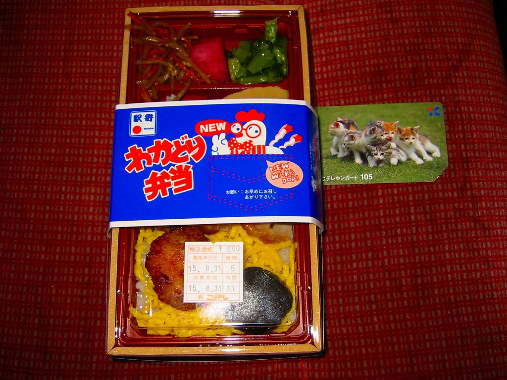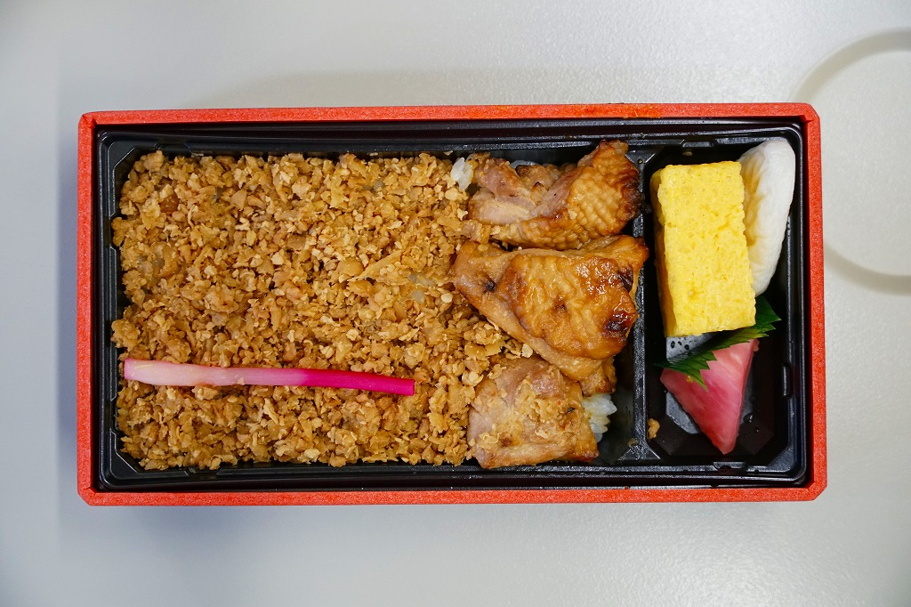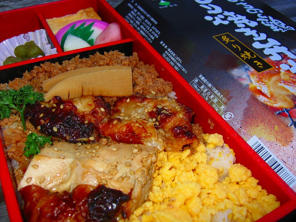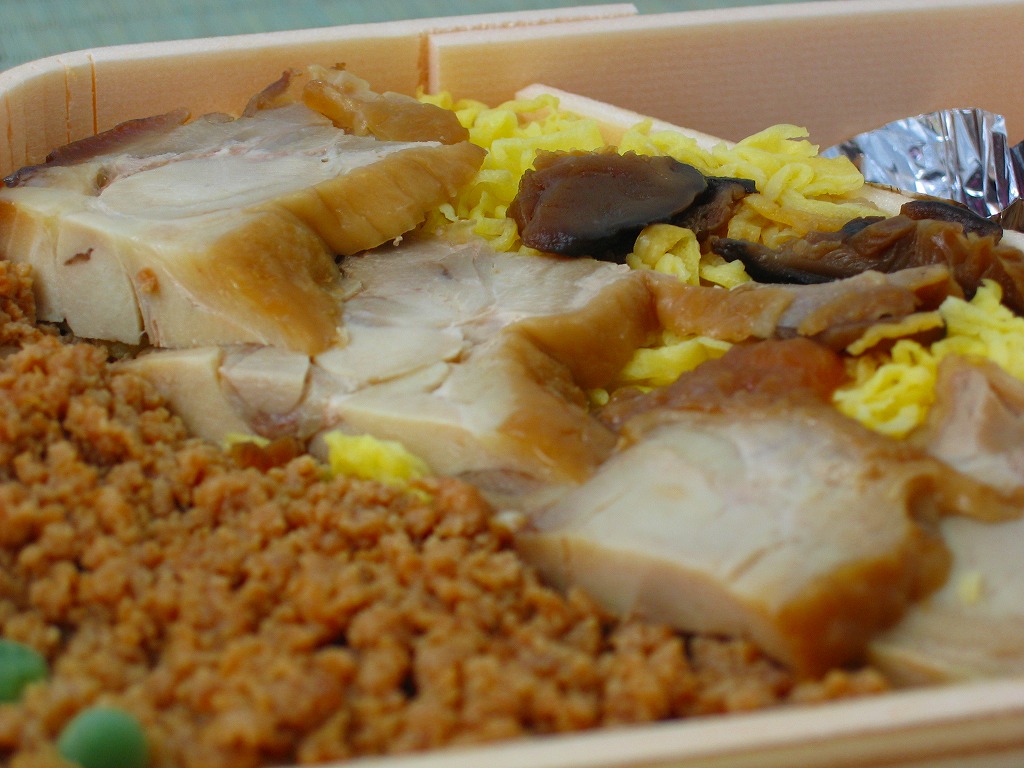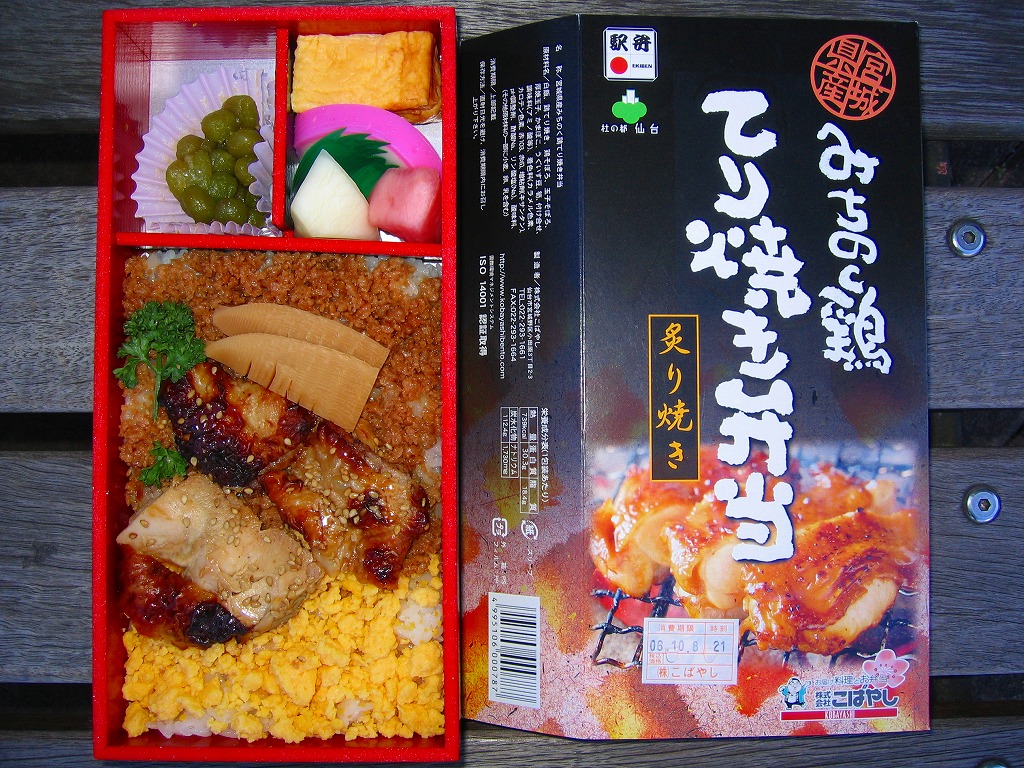 2005(平成17)年4月4日に発売。長方形の黒い容器を、鶏炭火網焼を思わせる写真を載せたボール紙の枠にはめる。中身は白御飯の上に鶏そぼろ、卵そぼろ、炭火であぶり焼きにしたという柚子風味な宮城県産「みちのく鶏」3切れ、タケノコなどを載せ、うぐいす豆、大根浅漬け、玉子焼、蒲鉾を添える。