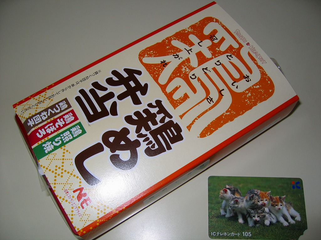 この種の駅弁は各地でいくつも見た気がするが、こちらは鶏肉の締まりの良さと、玉子そぼろの手作り感で上位レベル。仙台駅弁は鶏もうまい。付合せの見栄えと内容をもう一段上げれば、なおよい。2009年頃までの販売か。