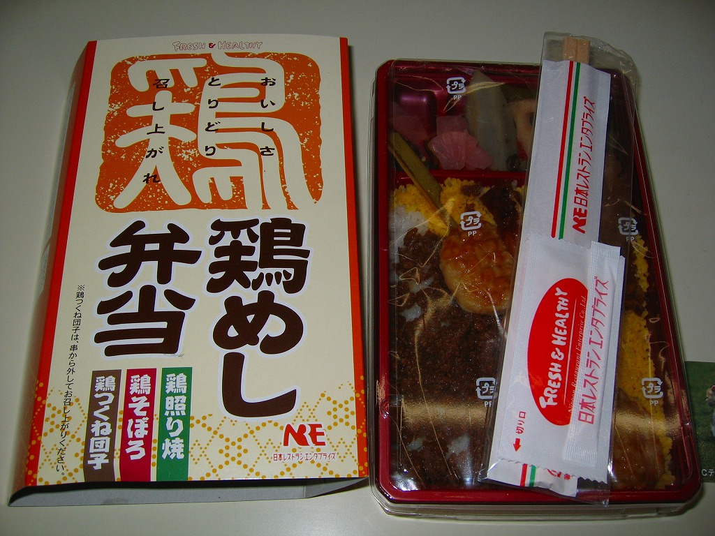 仙台駅の鶏飯駅弁の、日本レストランエンタプライズ(NRE)版。各地の駅弁でよく使われる長方形のプラ容器に、白飯を詰め、辛めの鶏そぼろ、軟らか鶏つくね団子、しっかり鶏照焼と三種の鶏で覆い、煮物などを付け合わせる。内容に仙台駅との関わりは現在も今後も薄そうだが、機能本位で風味も分量も価格も申し分なく、地元業者を駆逐しない範囲で売れて良いと思う。今はこの姿では存在しないと思われる。