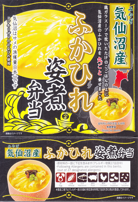 2020(令和2)年1月26日に仙台駅で発売。発売のプレスリリースでは、地域活性化と東日本大震災復興をうたう。真ん丸の容器に茶飯を詰め、1枚の玉子焼で覆い、ふかひれのあんかけ1枚でさらに覆う。フカヒレの見栄えは、テレビのグルメリポートと同等。さすがに薄造りだが、この姿ならばお買い得な豪華駅弁として、ふとしたことで人気が爆発する可能性を感じた。しかし年内に終売か。